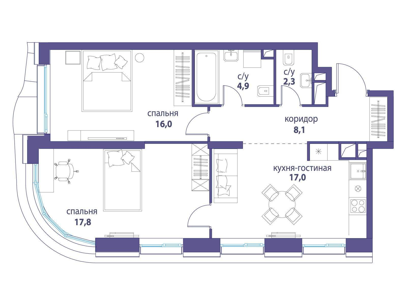 Продаются 2-к апартаменты площадью 55.7 кв.м. на 26-м этаже 28 этажного дома в "ЭМОУШН" от ГК ОСНОВА