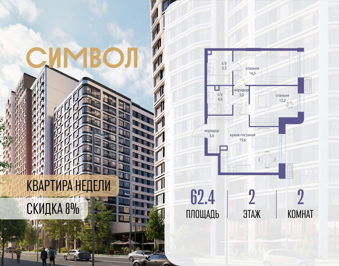 Продается 2-комнатная квартира от застройщика: общая площадь 62.40 м, жилая 26.70 м, кухня 19.60 м, 2-й этаж, жилой квартал «Гордость», корпус 36 (секция 5) . Срок сдачи: 2 квартал 2029 года.