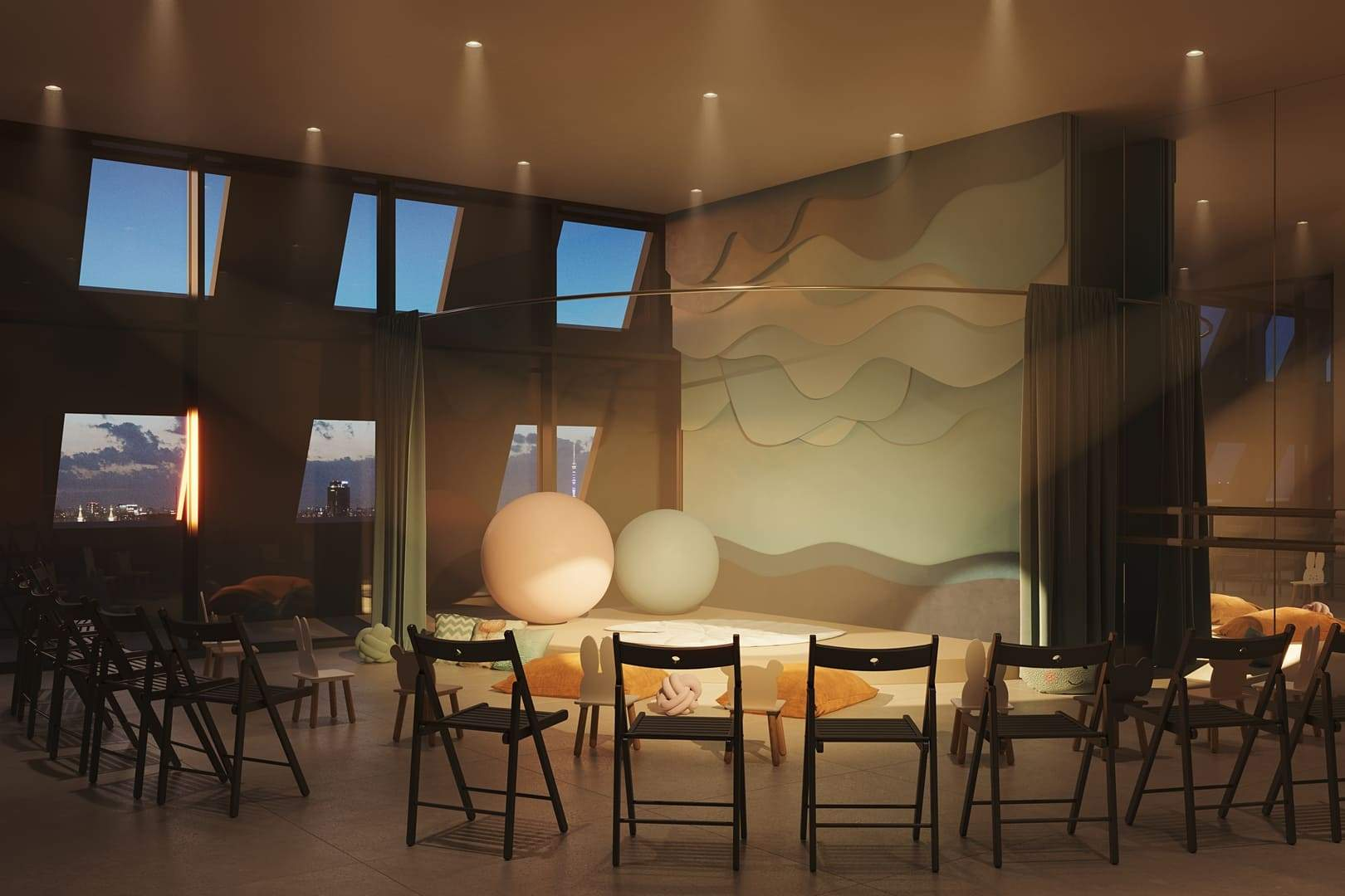 Emotion включает в себя 4 корпуса переменной этажности, собственный спа-центр с открытым бассейном, офисный центр с конференц-залом и амфитеатром, подземный паркинг, кафе, супермаркет, а также специально отведенные пространства для проведения частных и детских мероприятий, организации досуга и заботы о своей красоте и здоровье.
