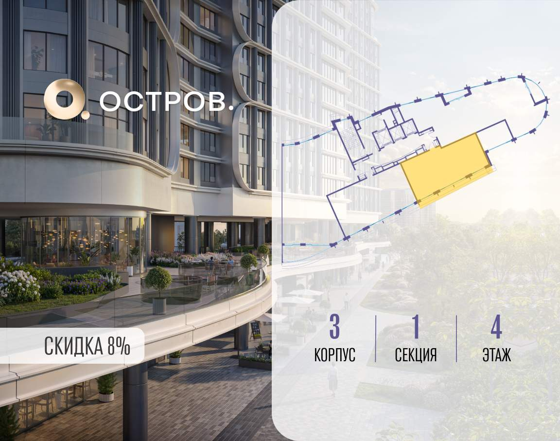 ОСТРОВ от Донстрой - жилой комплекс на западе Москвы, в Мневниковской пойме. Уникальное преимущество комплекса - в том, что он обособлен от города рекой и природным парком (650 га) . Благодаря природному окружению эта территория имеет лучший экологический рейтинг в столице. Кварталы ОСТРОВА объединены ландшафтным дизайном в единое пространство - с набережными и Центральным бульваром. На ОСТРОВЕ любые объекты, необходимые для полноценной жизни и отдыха, находятся на расстоянии 15-минутной прогулки. Торговый центр и супермаркеты, кафе и рестораны, фитнес, салоны красоты, школы и детские сады. А также крупнейший в Москве спортивный кластер.