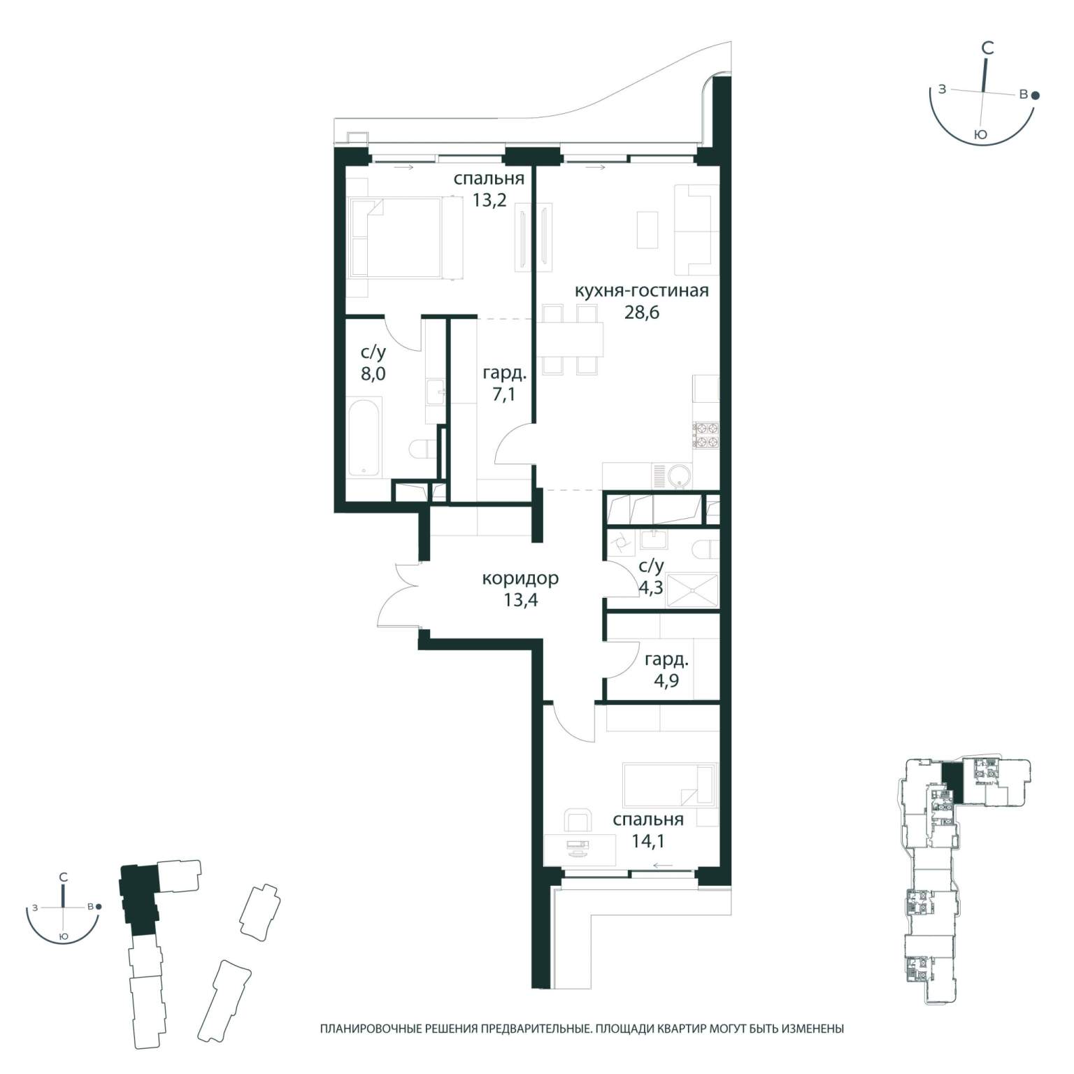 Квартира располагается на 31 этаже 48-этажного дома в ЖК Начало.