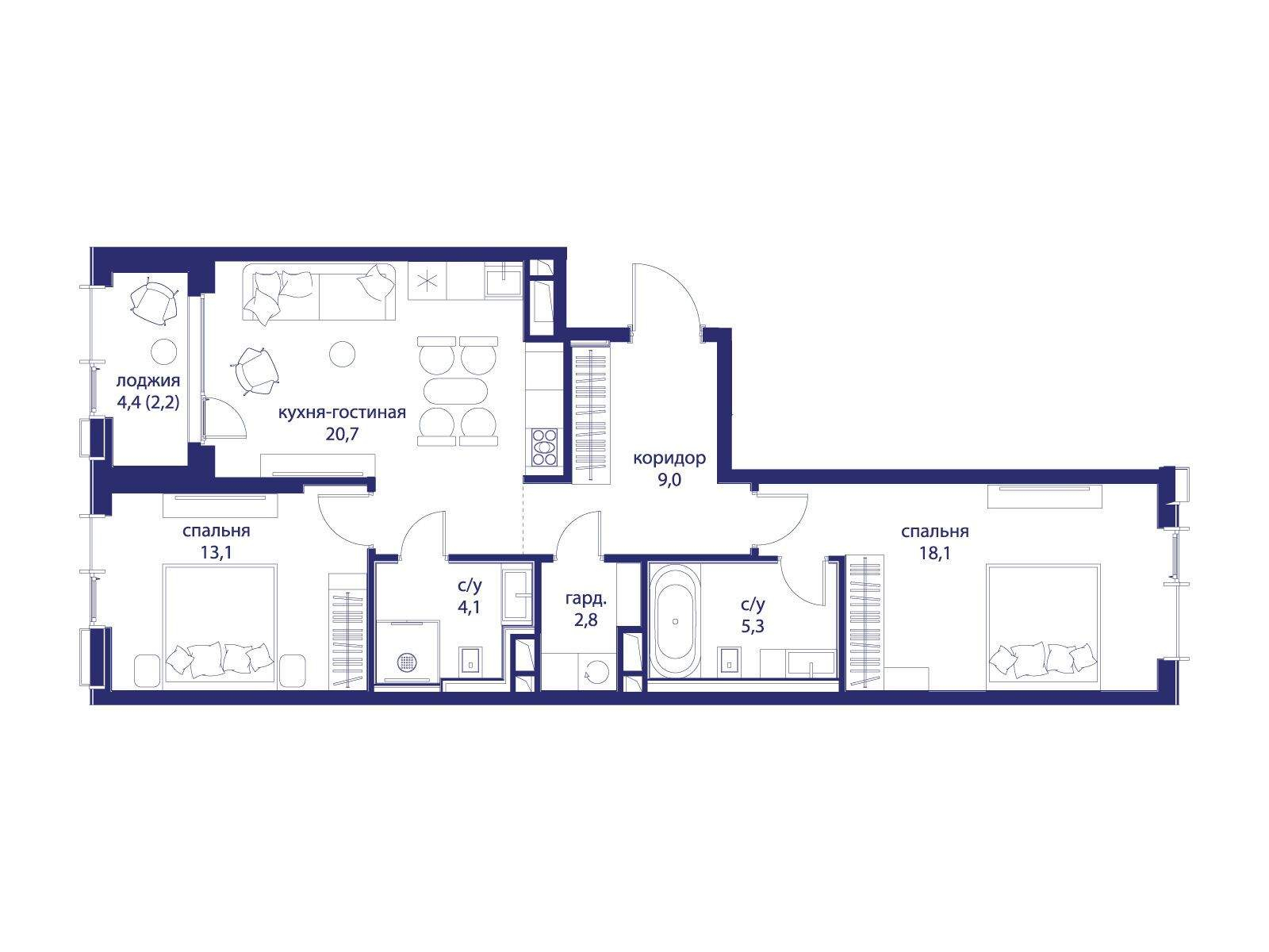 Продаётся 2-комнатная квартира от застройщика: общая площадь 75.30 м, жилая 31.20 м, кухня 20.70 м, 9-й этаж, жилой квартал «Событие-6», корпус 1 (секция 2) Срок сдачи: 4 квартал 2029 года.