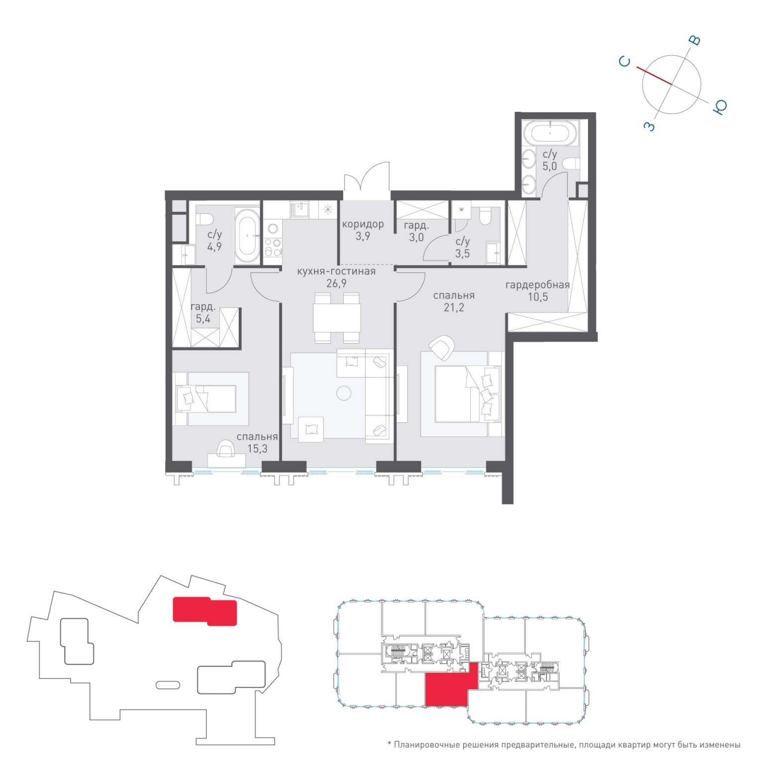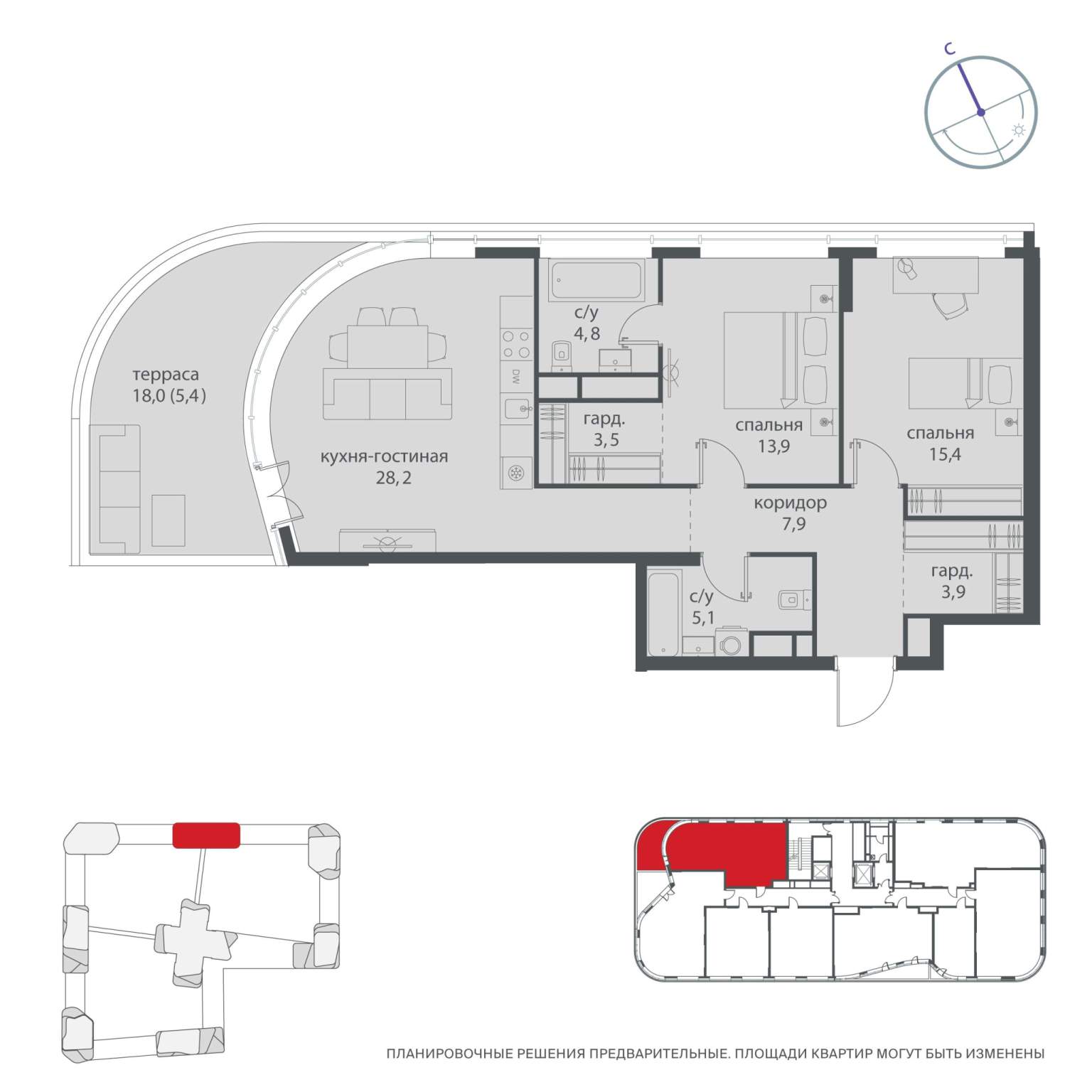 Квартира располагается на 15 этаже 24-этажного дома в ЖК Татарская 35. , сдача дома - III квартал 2028 года, высота потолков 3 м