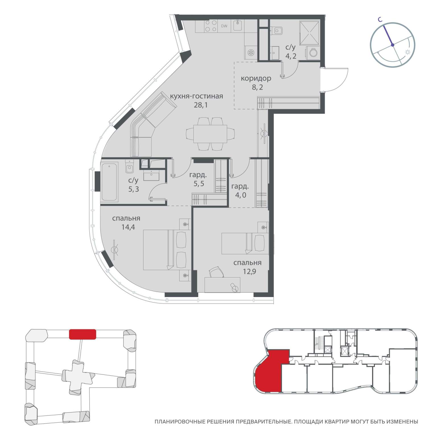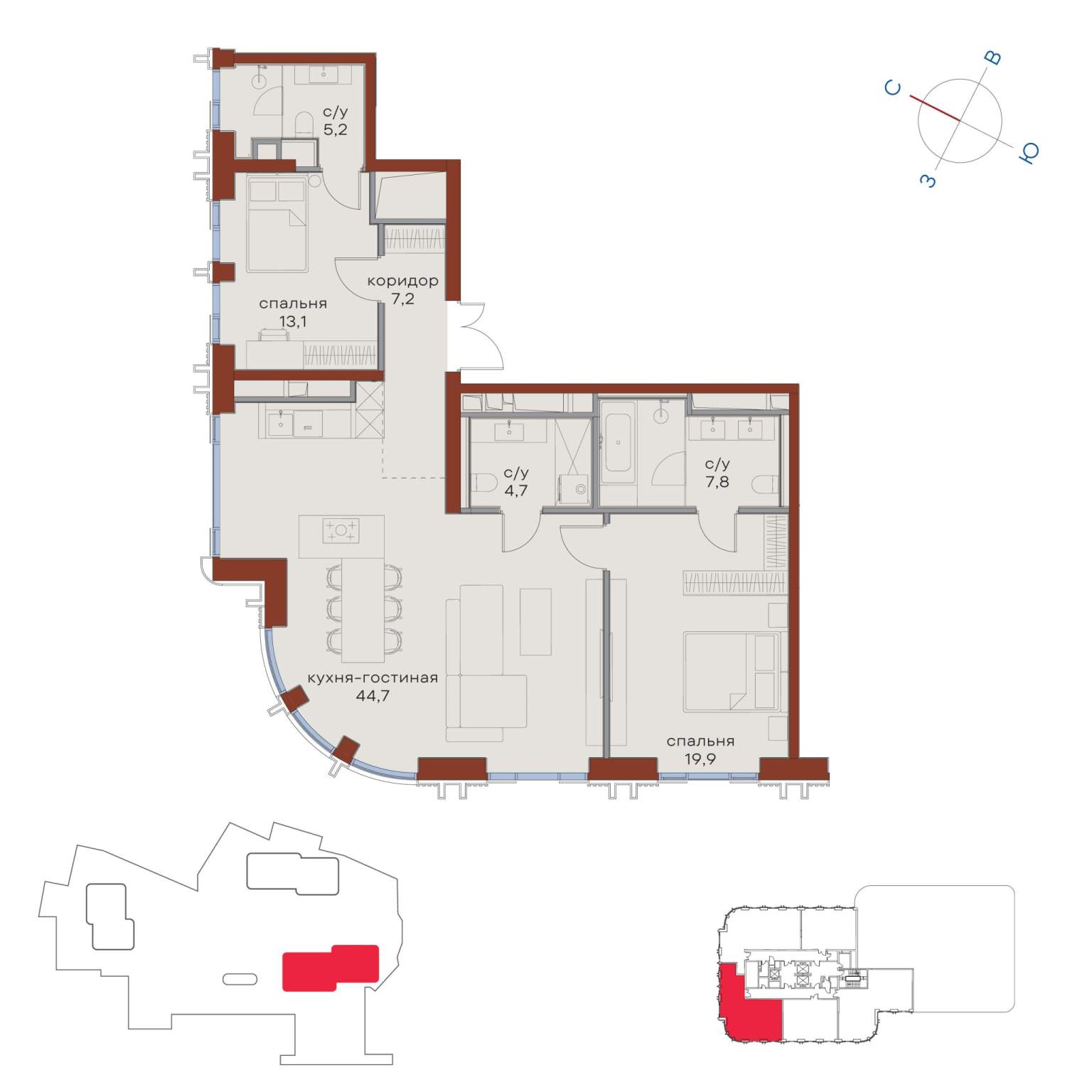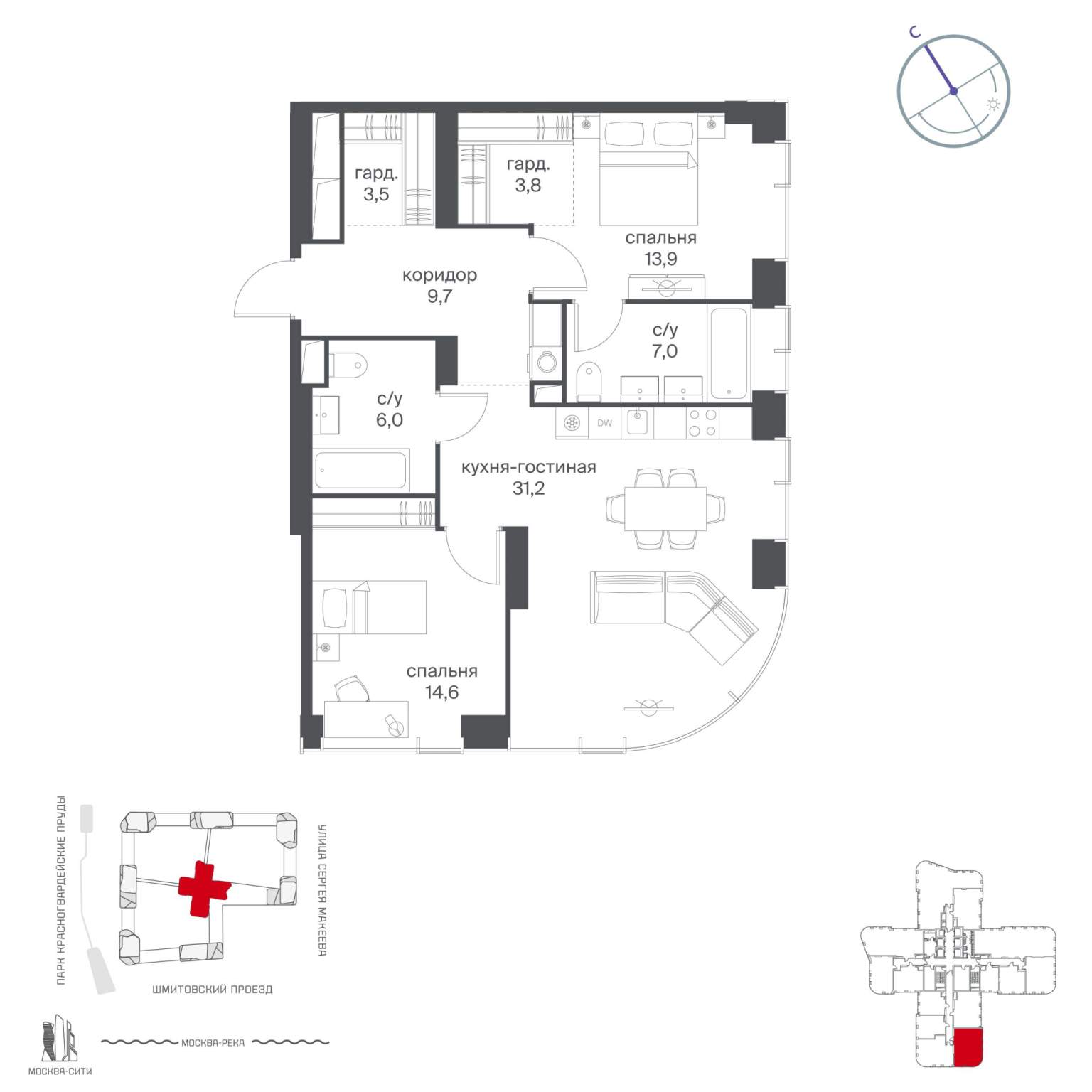 Квартира располагается на 31 этаже 48-этажного дома в ЖК Начало.