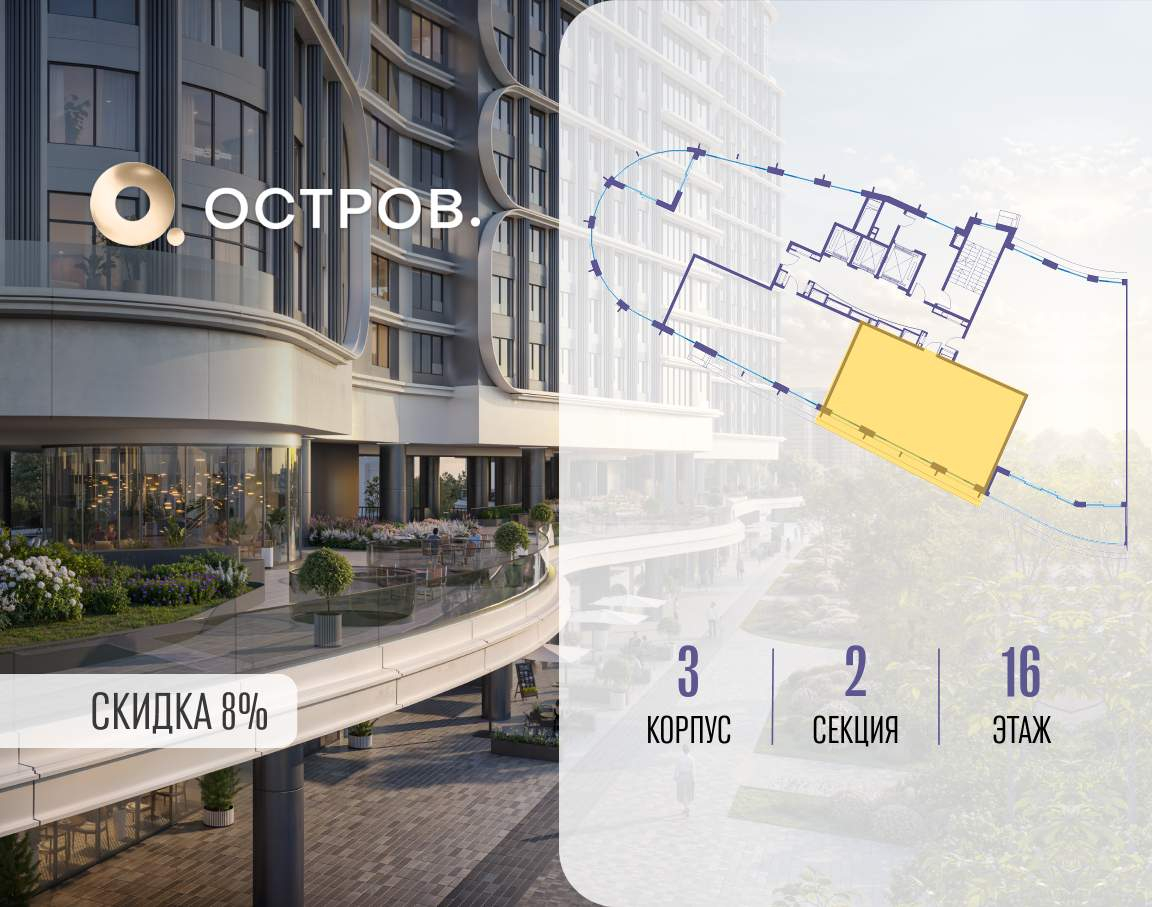 ОСТРОВ от Донстрой - жилой комплекс на западе Москвы, в Мневниковской пойме. Уникальное преимущество комплекса - в том, что он обособлен от города рекой и природным парком (650 га) . Благодаря природному окружению эта территория имеет лучший экологический рейтинг в столице. Кварталы ОСТРОВА объединены ландшафтным дизайном в единое пространство - с набережными и Центральным бульваром. На ОСТРОВЕ любые объекты, необходимые для полноценной жизни и отдыха, находятся на расстоянии 15-минутной прогулки. Торговый центр и супермаркеты, кафе и рестораны, фитнес, салоны красоты, школы и детские сады. А также крупнейший в Москве спортивный кластер.