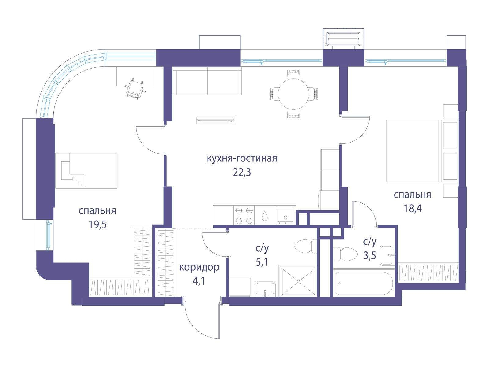 Продается 2-комнатная квартира от застройщика: общая площадь 72.90 м, жилая 37.90 м, кухня 22.30 м, 10-й этаж, жилой квартал «Гордость», корпус 36 (секция 2) . Срок сдачи: 2 квартал 2029 года.