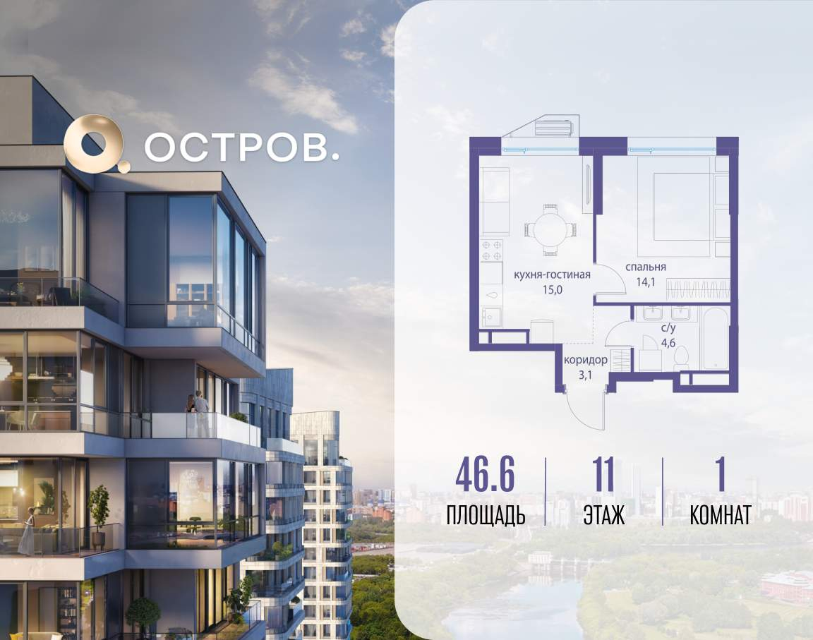 Продаётся 1-комнатная квартира от застройщика: общая площадь 51.80 м, жилая 17.10 м, кухня 25.70 м, 25-й этаж, жилой квартал «Событие-6», корпус 2 (секция 1) Срок сдачи: 1 квартал 2029 года.