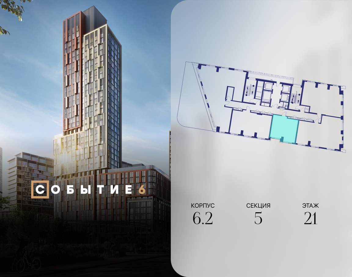 Продаётся 1-комнатная квартира от застройщика: общая площадь 38.30 м, жилая 14.60 м, кухня 15.70 м, 21-й этаж, жилой квартал «Событие-6», корпус 2 (секция 5) Срок сдачи: 1 квартал 2029 года.