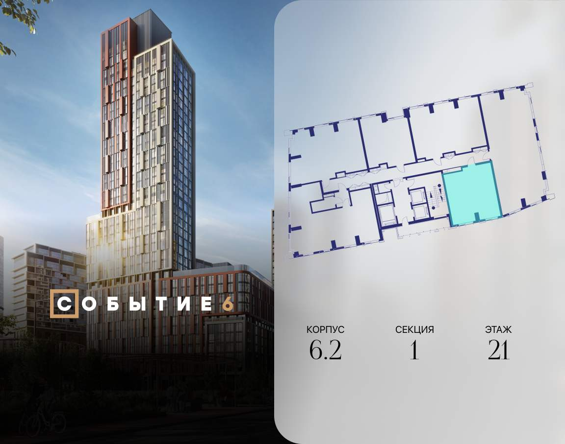 Продаётся 1-комнатная квартира от застройщика: общая площадь 51.10 м, жилая 16.80 м, кухня 25.50 м, 21-й этаж, жилой квартал «Событие-6», корпус 2 (секция 1) Срок сдачи: 1 квартал 2029 года.