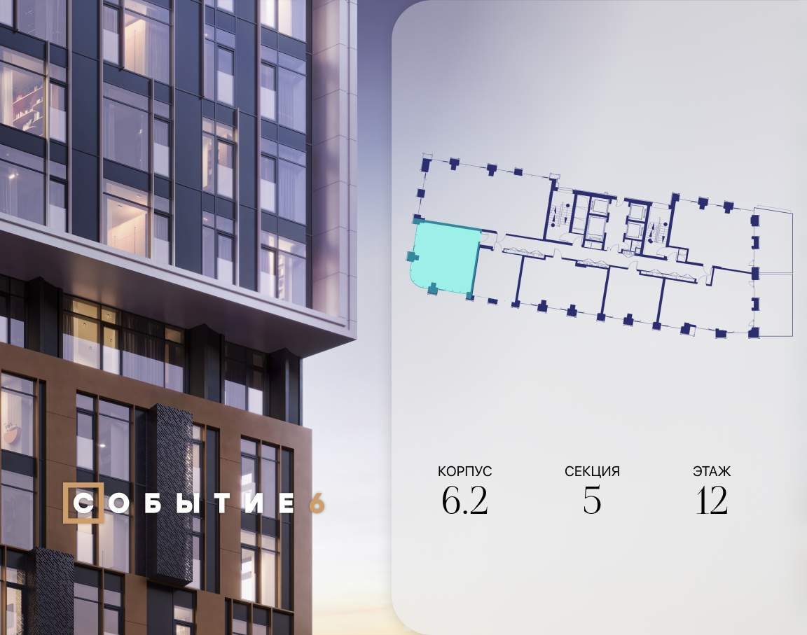 Продаётся 1-комнатная квартира от застройщика: общая площадь 56.20 м, жилая 14.80 м, кухня 27.10 м, 12-й этаж, жилой квартал «Событие-6», корпус 2 (секция 5) Срок сдачи: 4 квартал 2029 года.