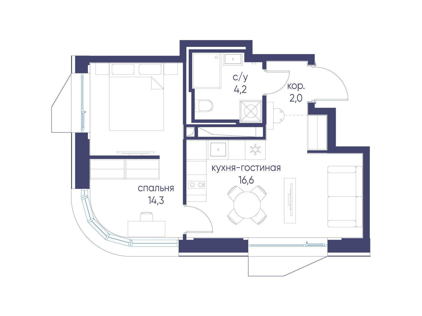 Продается 1-комнатная квартира от застройщика: общая площадь 37.10 м, жилая 14.30 м, кухня 16.60 м, 3-й этаж, жилой квартал «Гордость», корпус 40 (секция 1) . Срок сдачи: 2 квартал 2029 года.