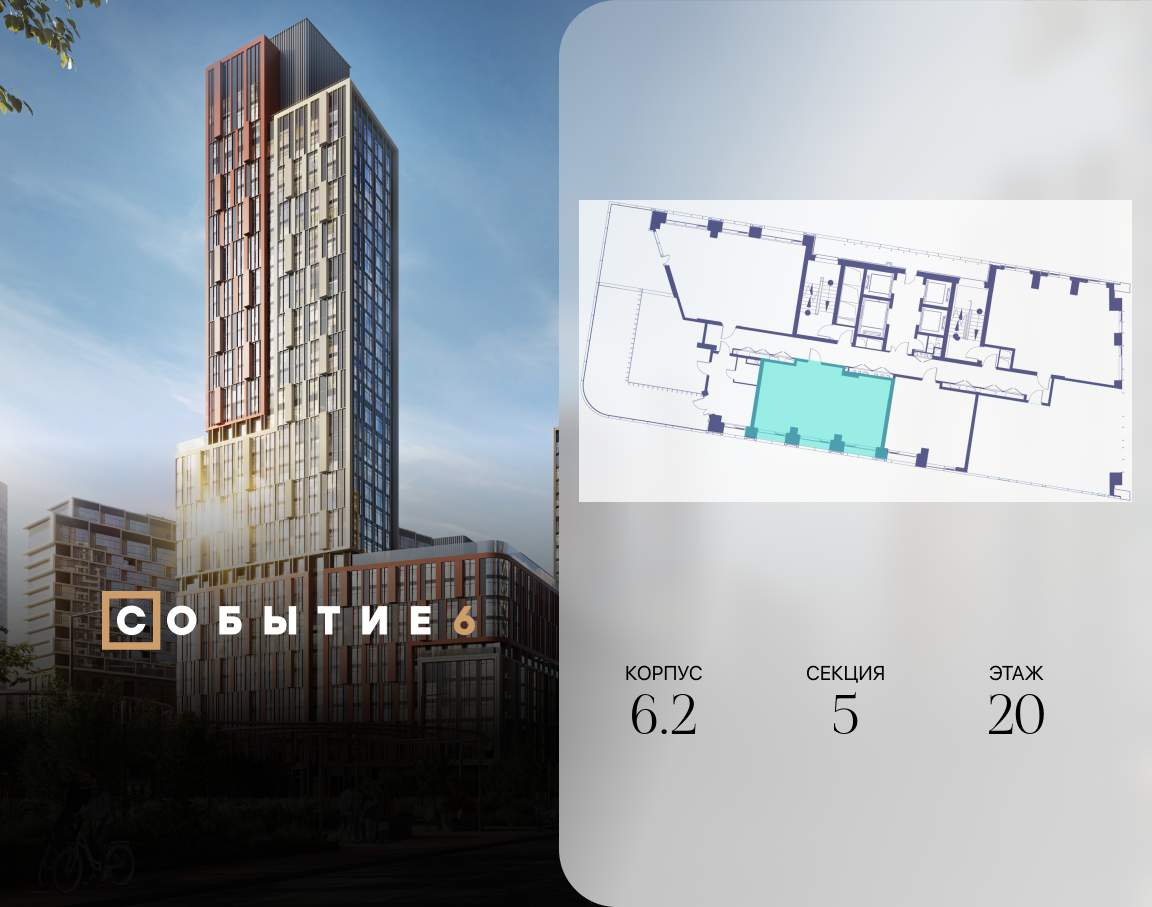 Продаётся 1-комнатная квартира от застройщика: общая площадь 56.40 м, жилая 15.70 м, кухня 29.20 м, 20-й этаж, жилой квартал «Событие-6», корпус 2 (секция 5) Срок сдачи: 1 квартал 2029 года.