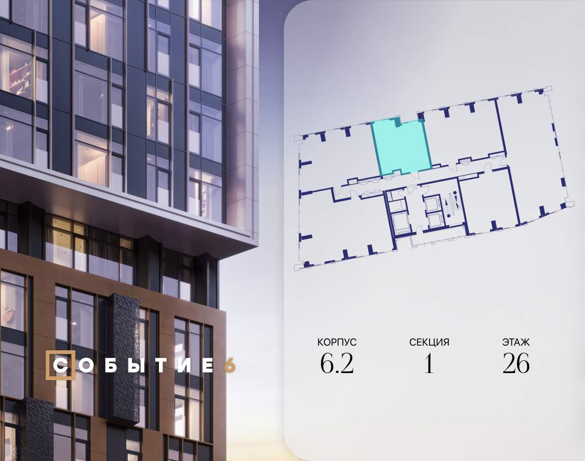 Продаётся 1-комнатная квартира от застройщика: общая площадь 44.80 м, жилая 17.00 м, кухня 20.20 м, 26-й этаж, жилой квартал «Событие-6», корпус 2 (секция 1) Срок сдачи: 4 квартал 2029 года.