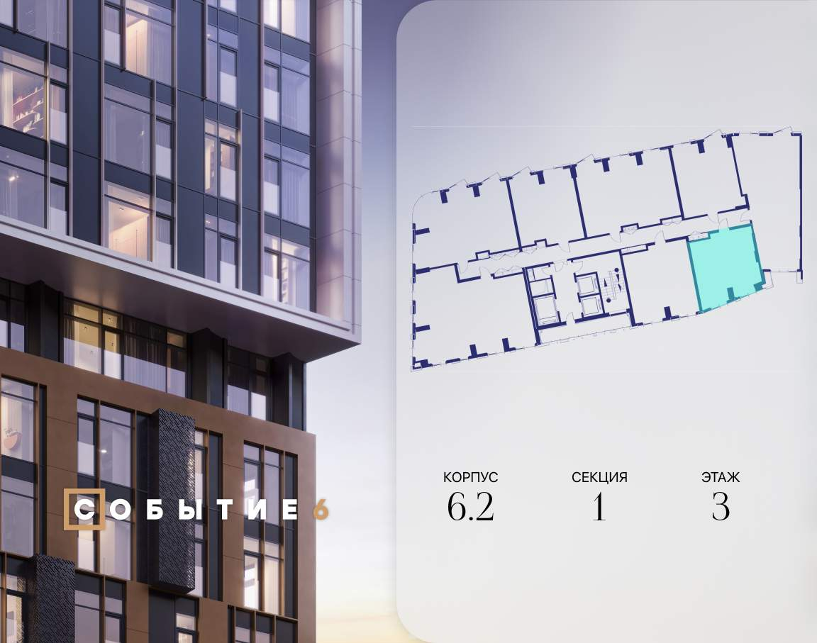Продаётся 1-комнатная квартира от застройщика: общая площадь 45.20 м, жилая 15.20 м, кухня 22.40 м, 3-й этаж, жилой квартал «Событие-6», корпус 2 (секция 1) Срок сдачи: 4 квартал 2029 года.