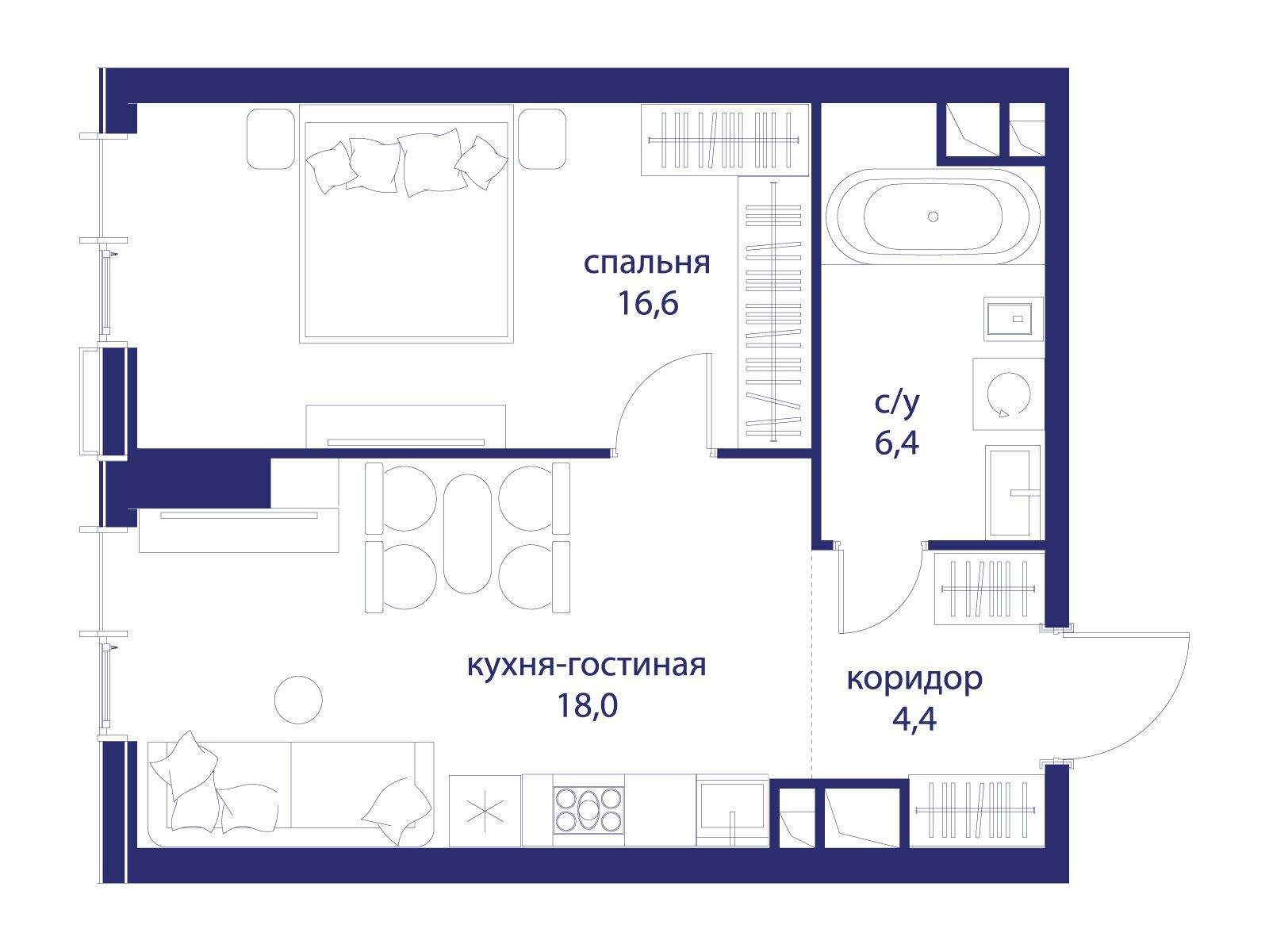 Продаётся 1-комнатная квартира от застройщика: общая площадь 45.40 м, жилая 16.60 м, кухня 18.00 м, 9-й этаж, жилой квартал «Событие-6», корпус 1 (секция 1) Срок сдачи: 4 квартал 2029 года.