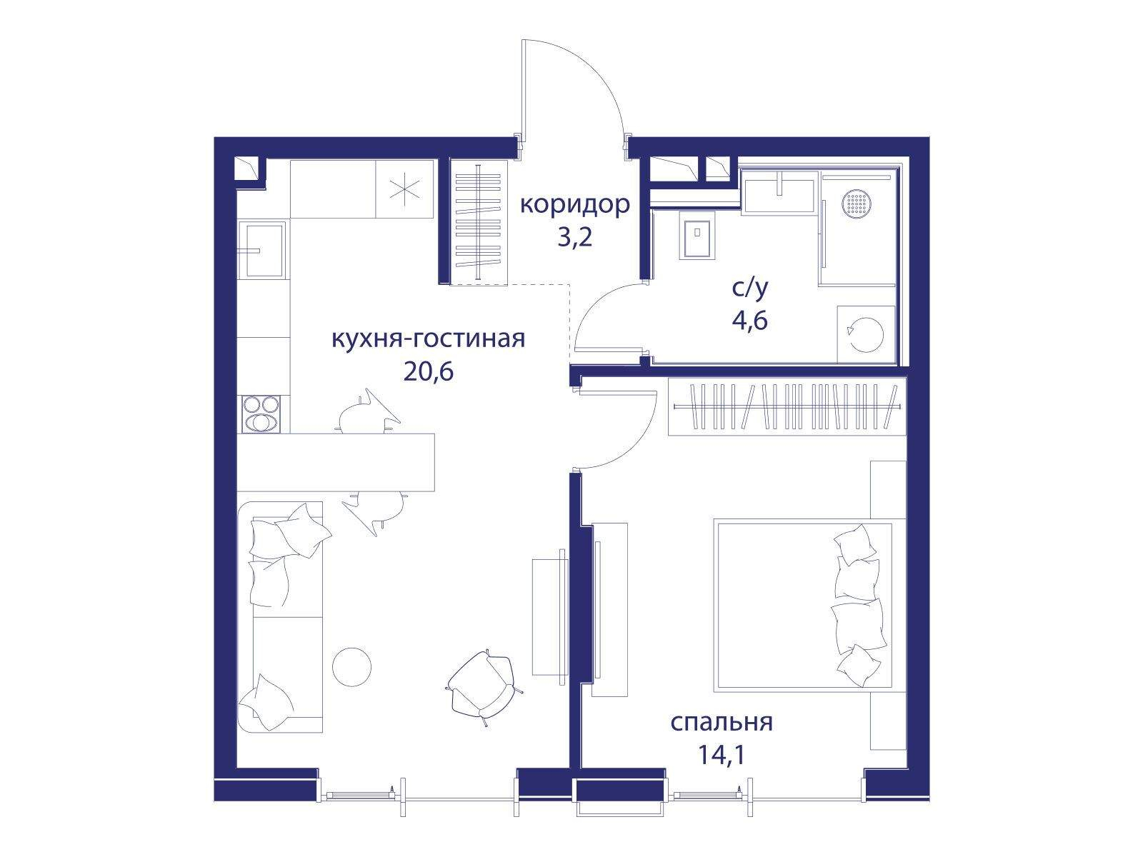 Продаётся 1-комнатная квартира от застройщика: общая площадь 42.50 м, жилая 14.10 м, кухня 20.60 м, 2-й этаж, жилой квартал «Событие-6», корпус 1 (секция 3) Срок сдачи: 4 квартал 2029 года.