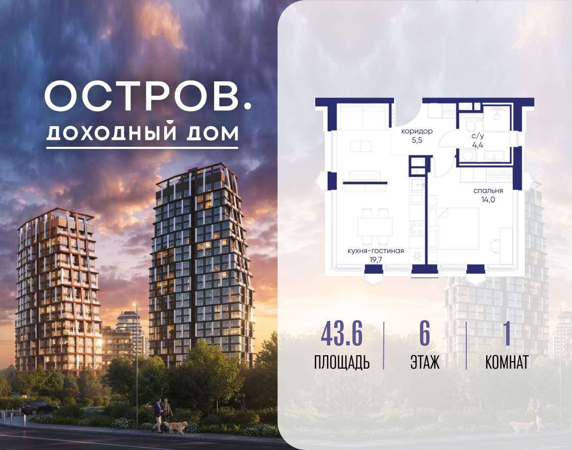 Остров. 14 ДОХОДНЫЙ ДОМ - ЧАСТЬ ПРОЕКТА «ОСТРОВ», В 10 МИНУТАХ ОТ МОСКВА-СИТИ, В 15 МИНУТАХ