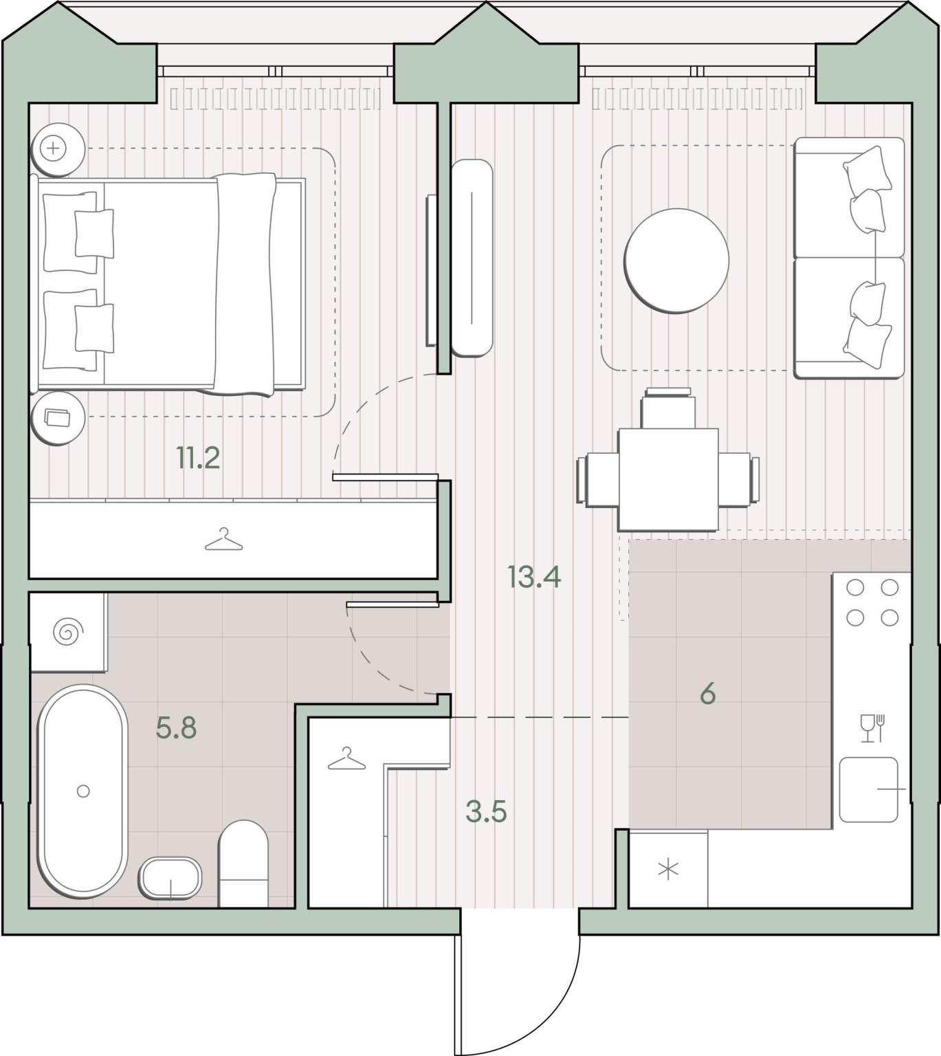 Жилая площадь 24.6 м2, кухня 6 м2, квартира без отделки, комнаты изолированные.