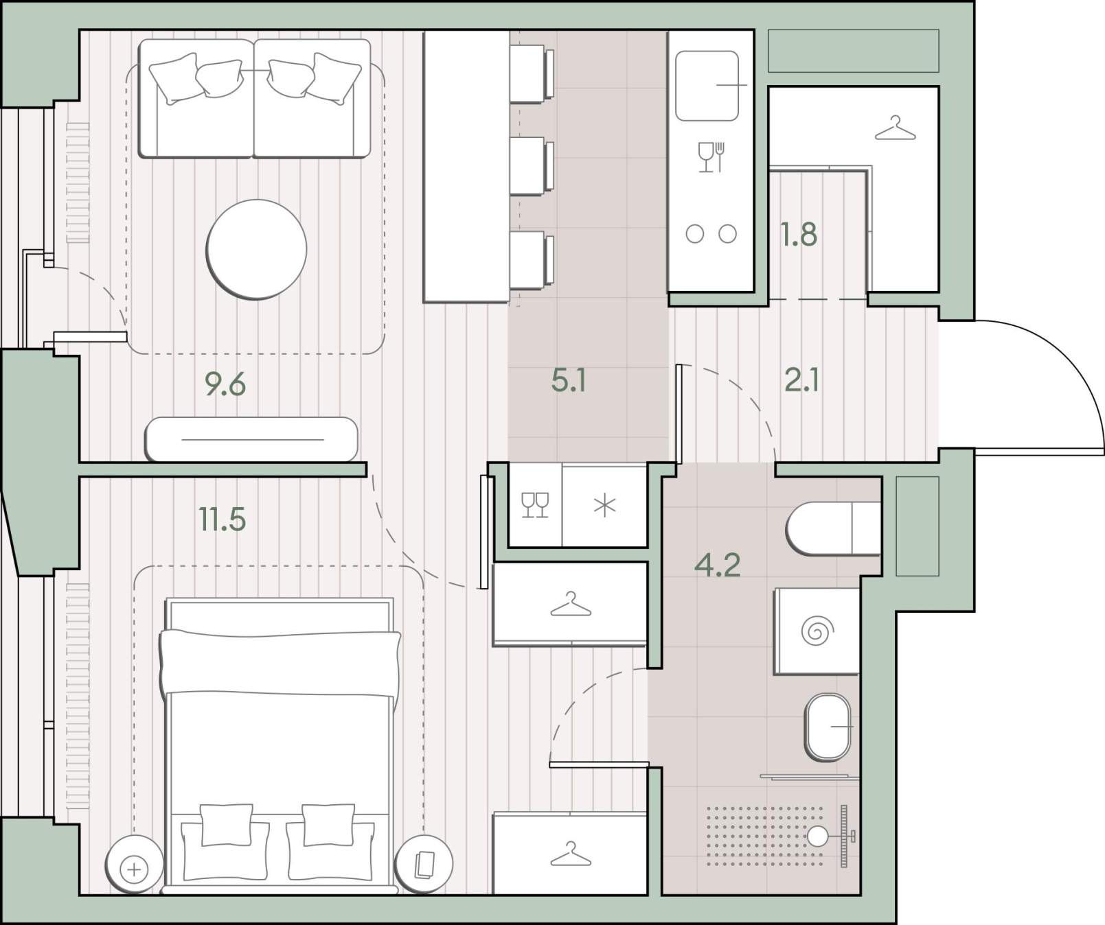 Жилая площадь 21.1 м2, кухня 5.1 м2, квартира без отделки, комнаты изолированные.