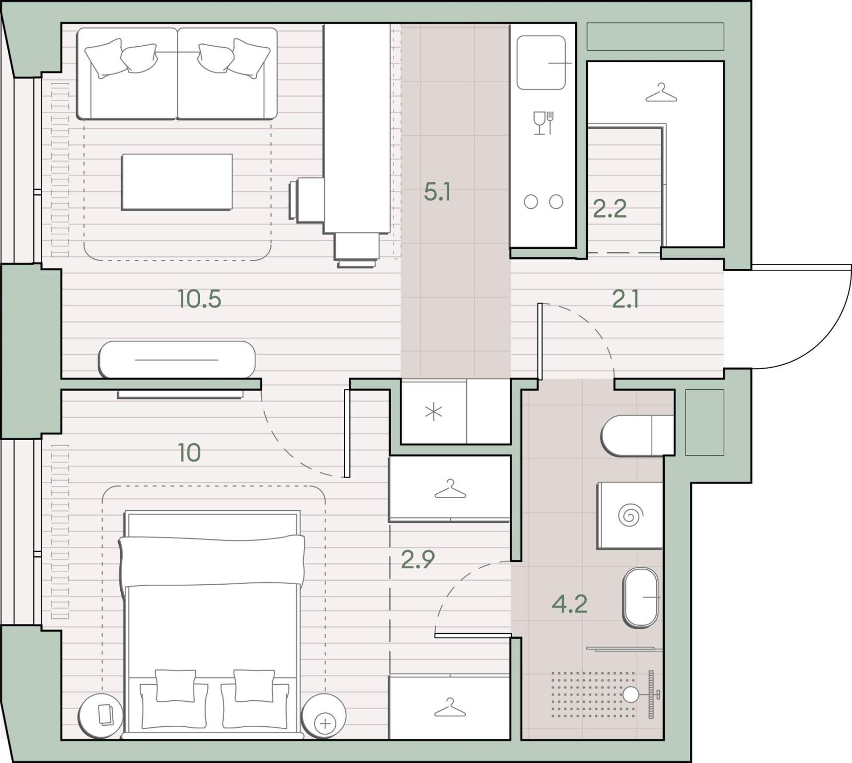 Жилая площадь 20.5 м2, кухня 5.1 м2, предчистовая отделка, комнаты изолированные.