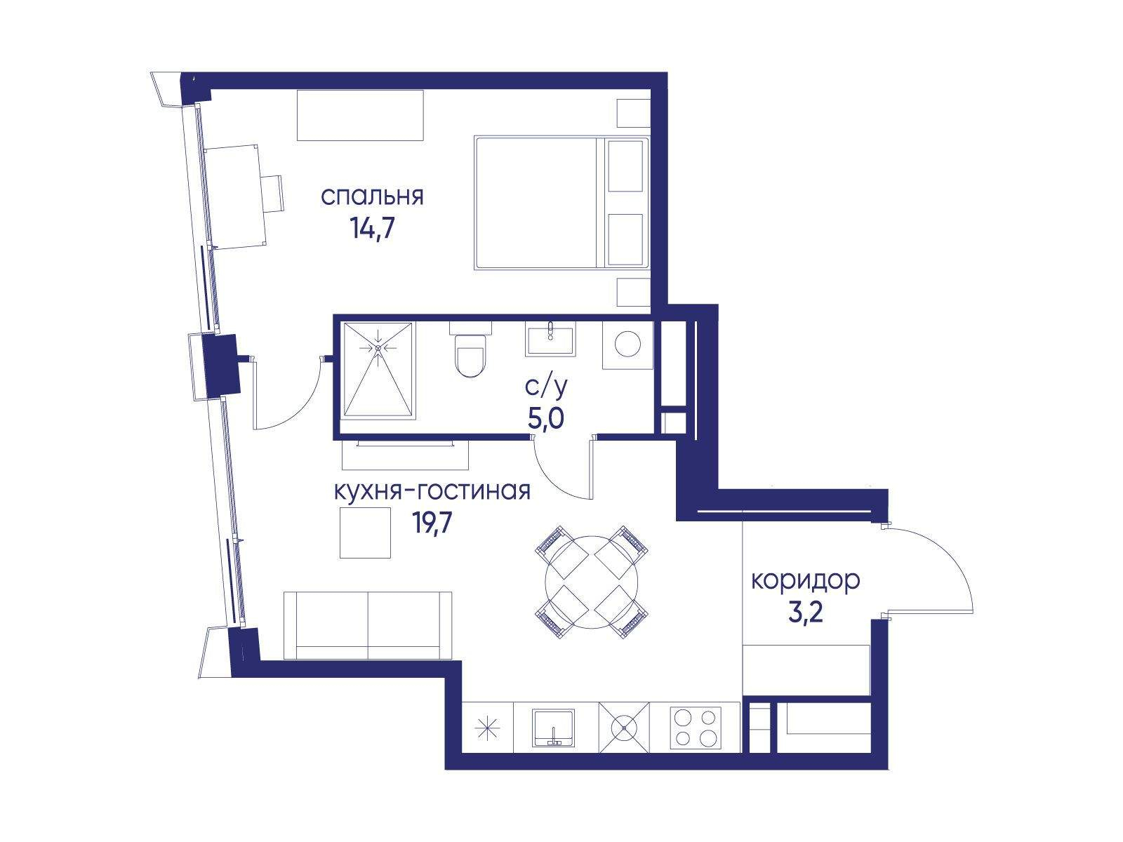 Продаётся 1-комн. квартира от застройщика: общая площадь 42.60 м, жилая 0.00 м, кухня 19.70 м, 17-й этаж, жилой квартал «Остров 14», корпус 4 (секция 1) . Срок сдачи: 2 квартал 2029 года.