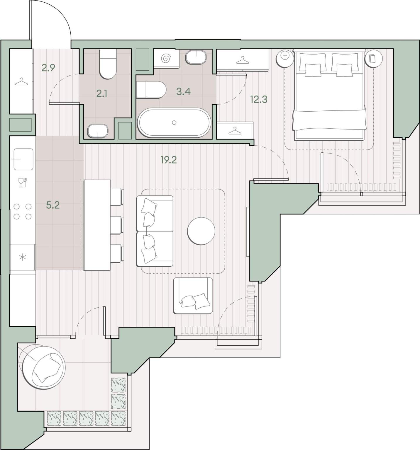 Жилая площадь 31.5 м2, кухня 5.2 м2, предчистовая отделка, комнаты изолированные.