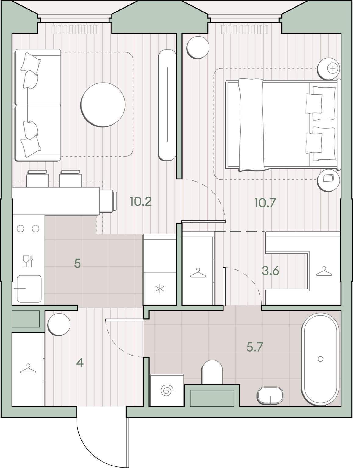 Жилая площадь 20.9 м2, кухня 5 м2, предчистовая отделка, комнаты изолированные.