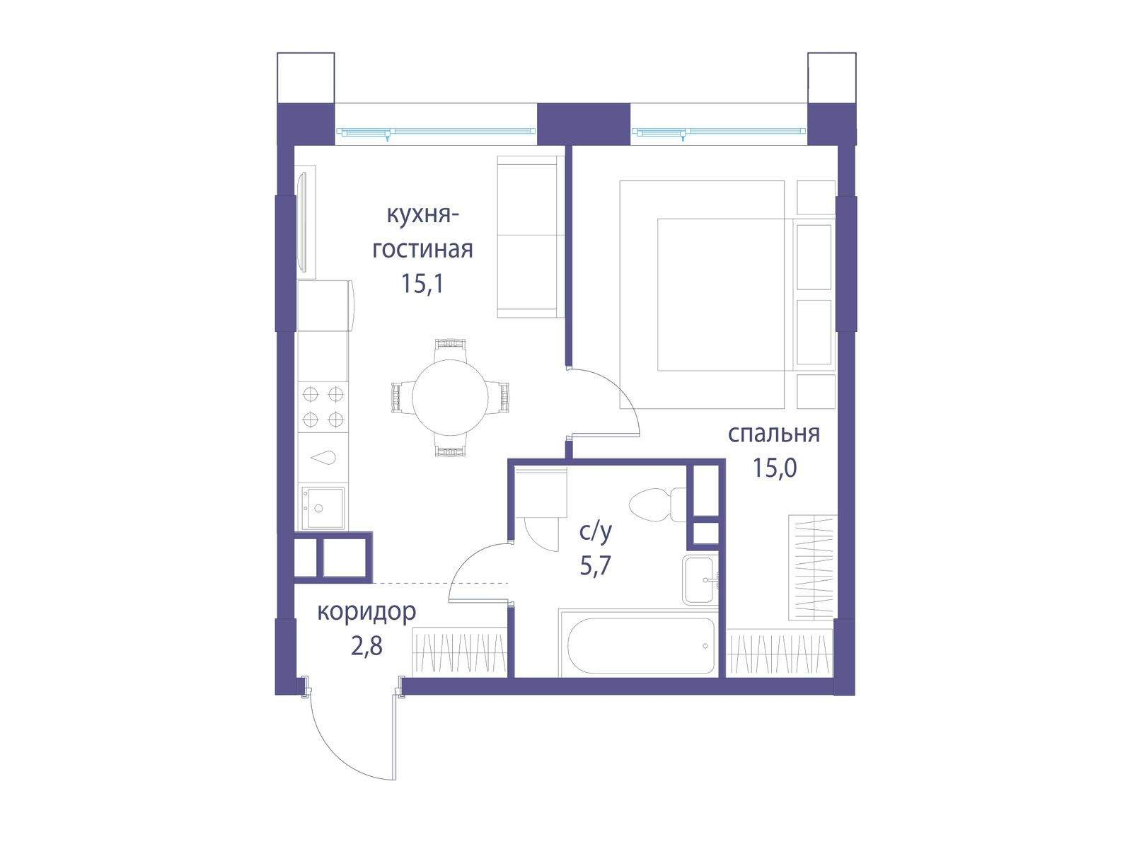 Продается 1-комнатная квартира от застройщика: общая площадь 38.60 м, жилая 15.00 м, кухня 15.10 м, 6-й этаж, жилой квартал «Гордость», корпус 36 (секция 5) . Срок сдачи: 2 квартал 2029 года.