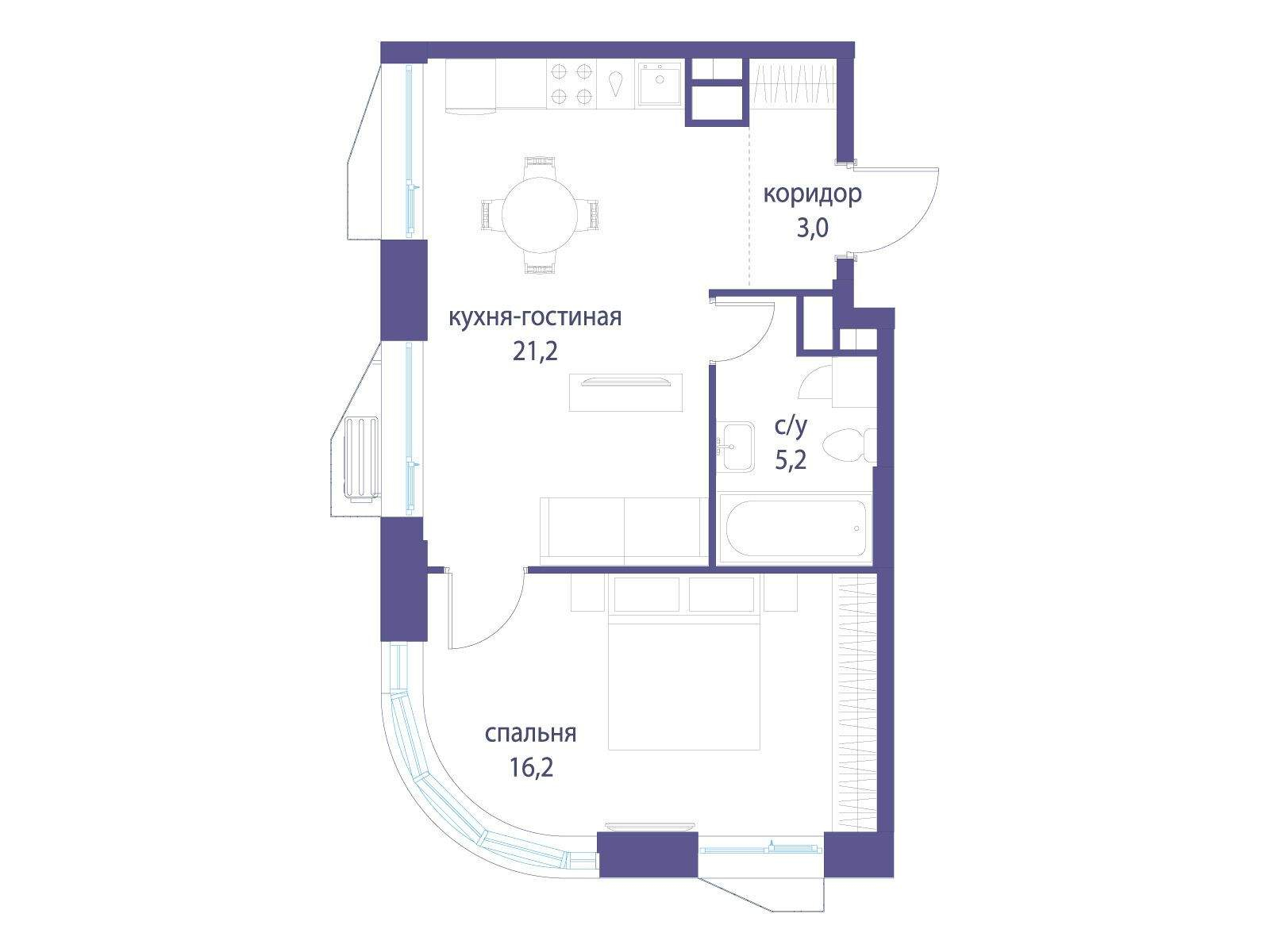 Продается 1-комнатная квартира от застройщика: общая площадь 45.60 м, жилая 16.20 м, кухня 21.20 м, 10-й этаж, жилой квартал «Гордость», корпус 36 (секция 1) . Срок сдачи: 2 квартал 2029 года.
