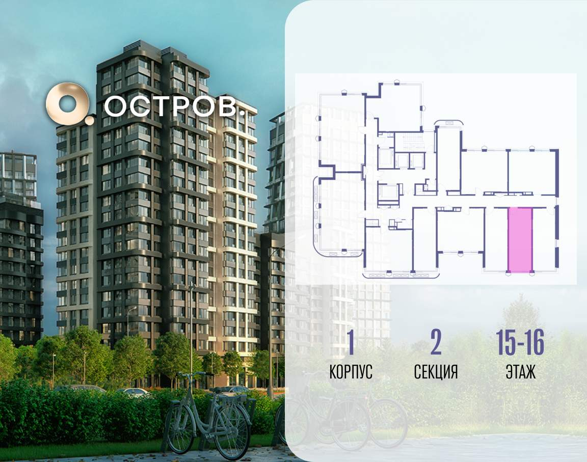 Продаётся квартира от застройщика: общая площадь 28.00 м, жилая 14.40 м, кухня 5.00 м, 15-й этаж, жилой квартал «Остров 14», корпус 1 (секция 2) . Срок сдачи: 2 квартал 2029 года.