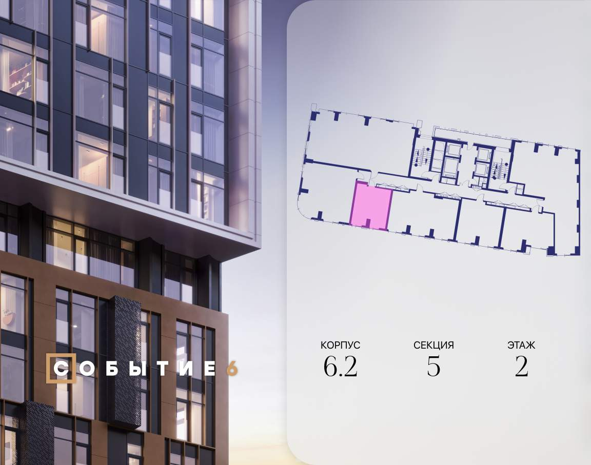 Продаётся квартира-студия от застройщика: общая площадь 31.90 м, жилая 20.10 м, кухня 5.00 м, 2-й этаж, жилой квартал «Событие-6», корпус 2 (секция 5) Срок сдачи: 4 квартал 2029 года.