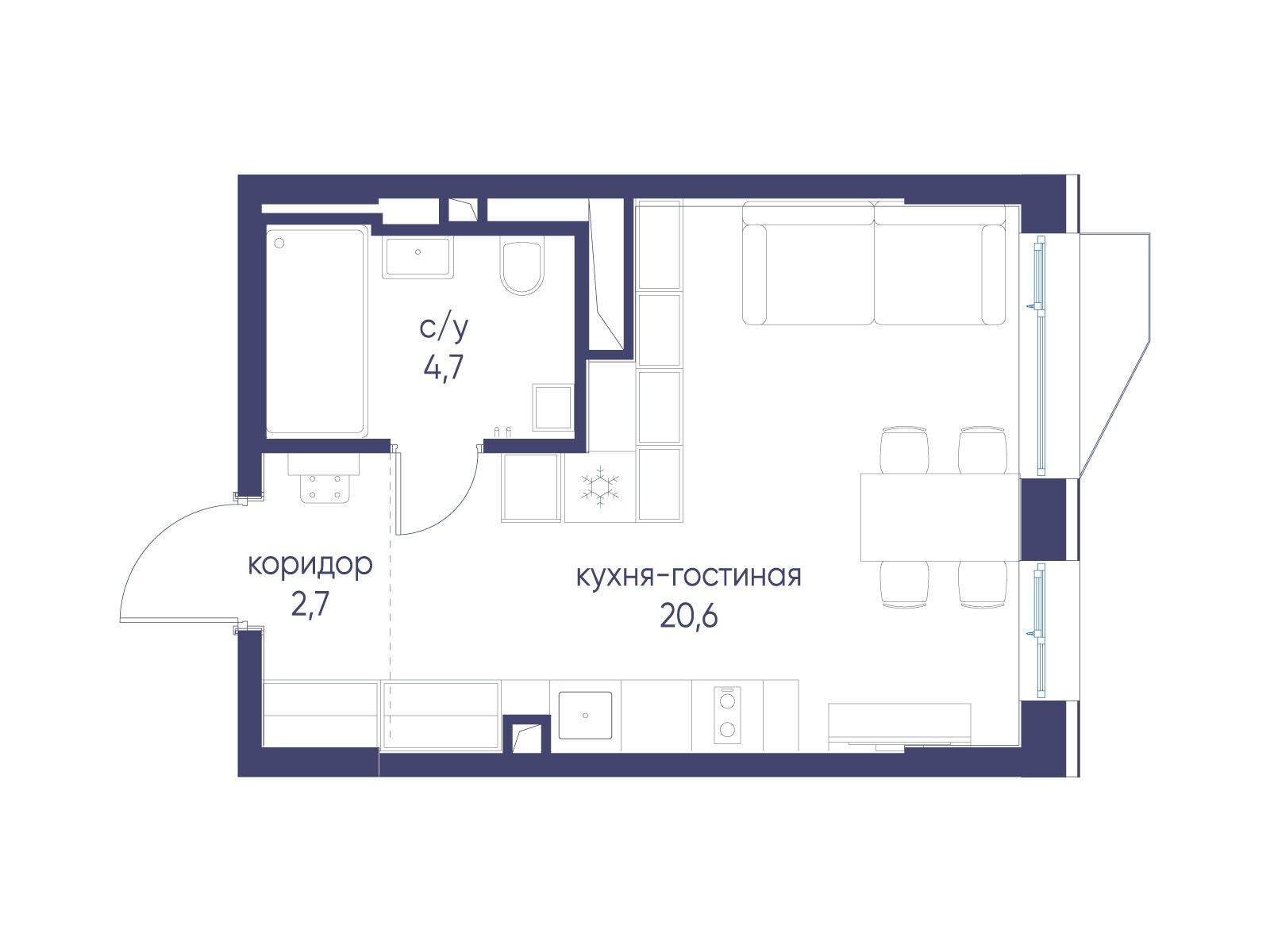 Продам квартиру-студию в новостройке 28 м.кв.