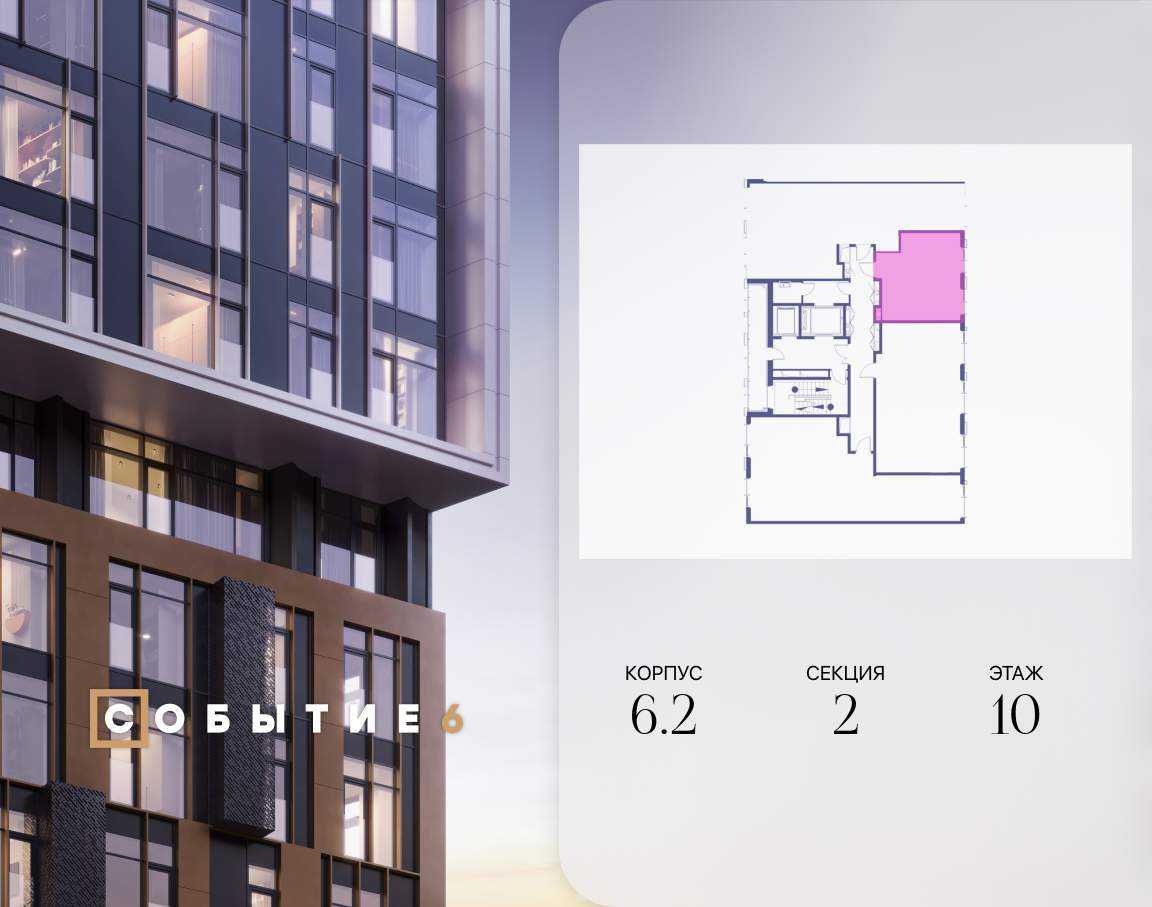 Продаётся квартира-студия от застройщика: общая площадь 33.90 м, жилая 20.00 м, кухня 5.00 м, 10-й этаж, жилой квартал «Событие-6», корпус 2 (секция 2) Срок сдачи: 4 квартал 2029 года.