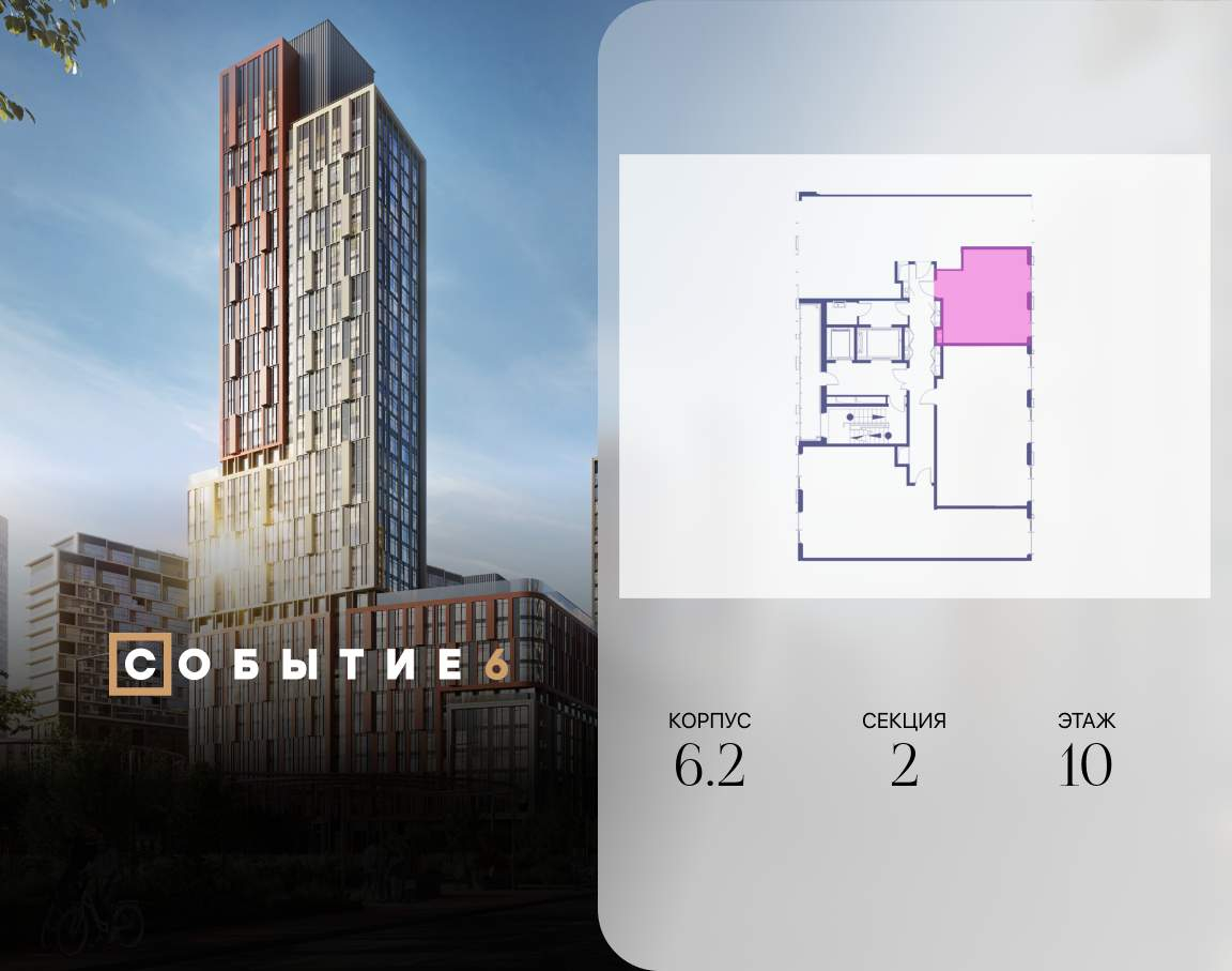Продаётся квартира-студия от застройщика: общая площадь 33.90 м, жилая 20.00 м, кухня 5.00 м, 10-й этаж, жилой квартал «Событие-6», корпус 2 (секция 2) Срок сдачи: 1 квартал 2029 года.