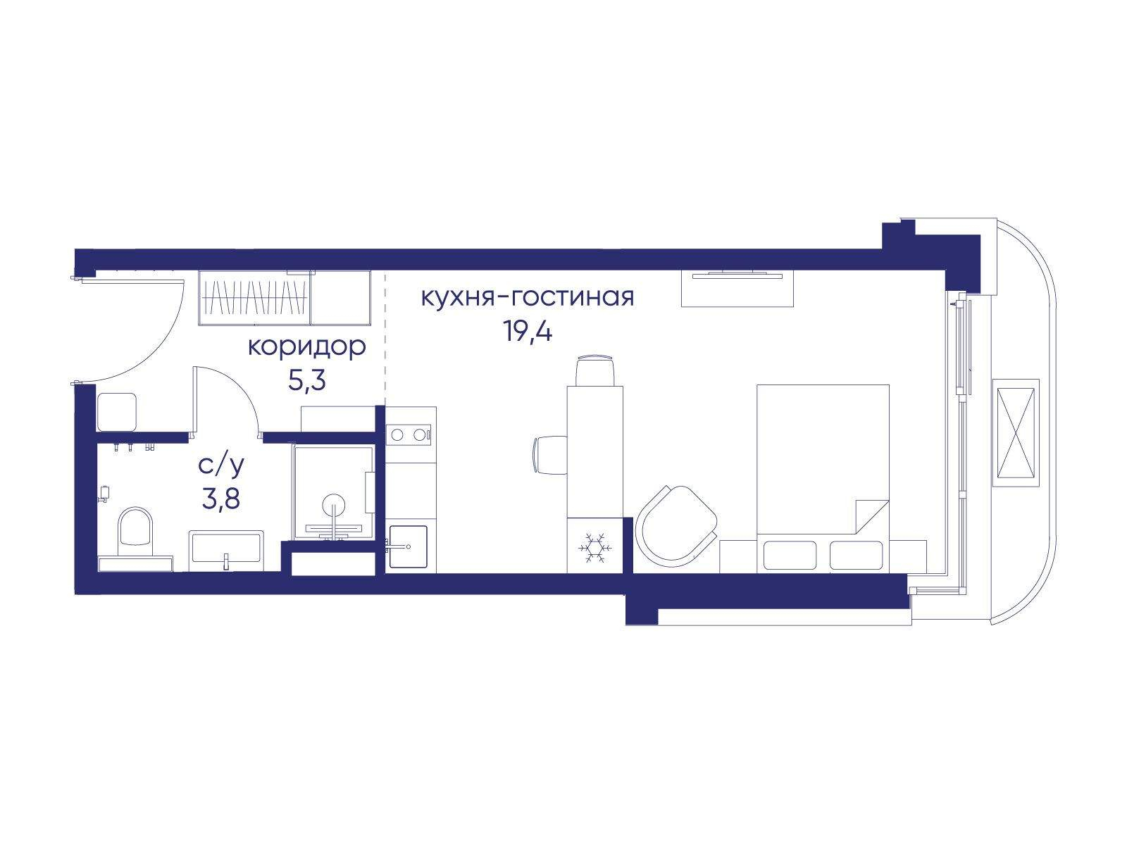 Продаётся квартира от застройщика: общая площадь 28.50 м, жилая 14.40 м, кухня 5.00 м, 2-й этаж, жилой квартал «Остров 14», корпус 1 (секция 2) . Срок сдачи: 2 квартал 2029 года.