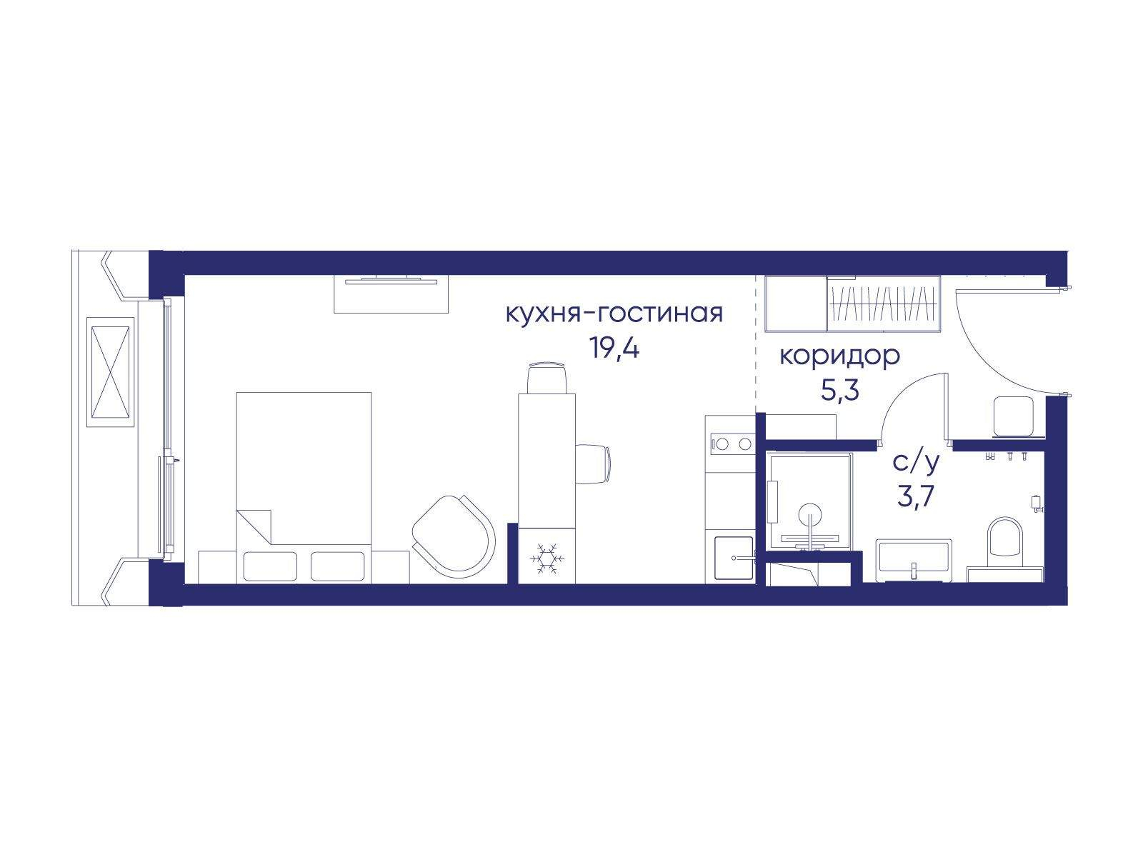 Продам квартиру-студию в новостройке 28.4 м.кв.