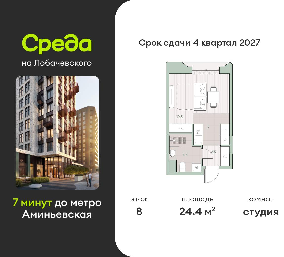 Застройщик - Среда, сдача дома - IV квартал 2027 года, высота потолков 2.92 м.