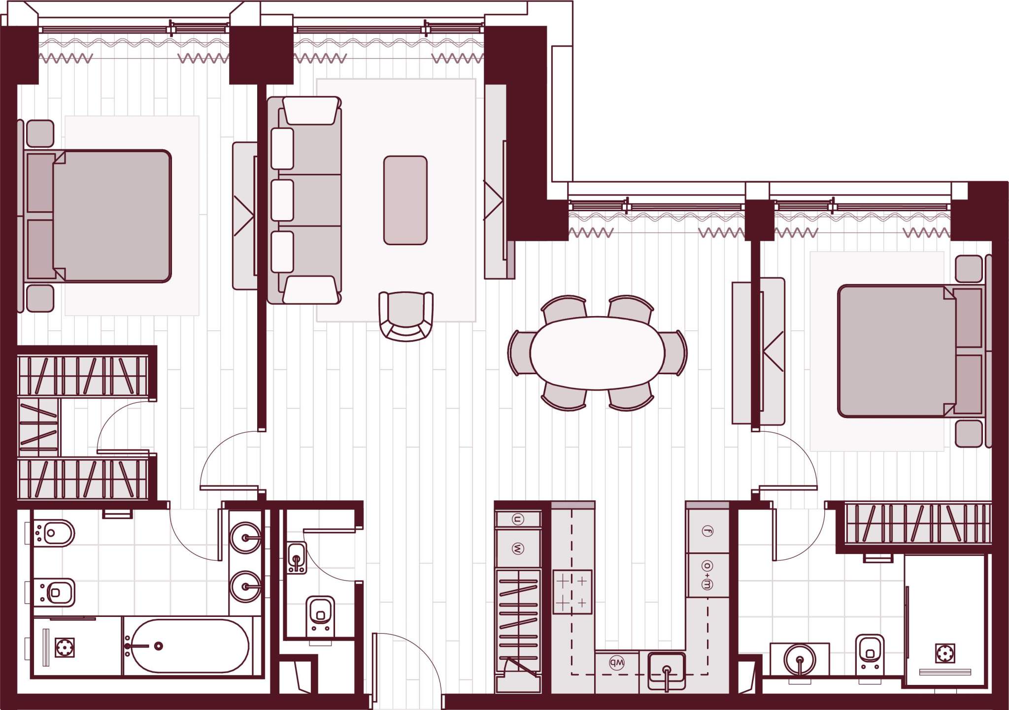 Жилая площадь 77.12 м2, предчистовая отделка, комнаты изолированные, окна выходят во двор.
