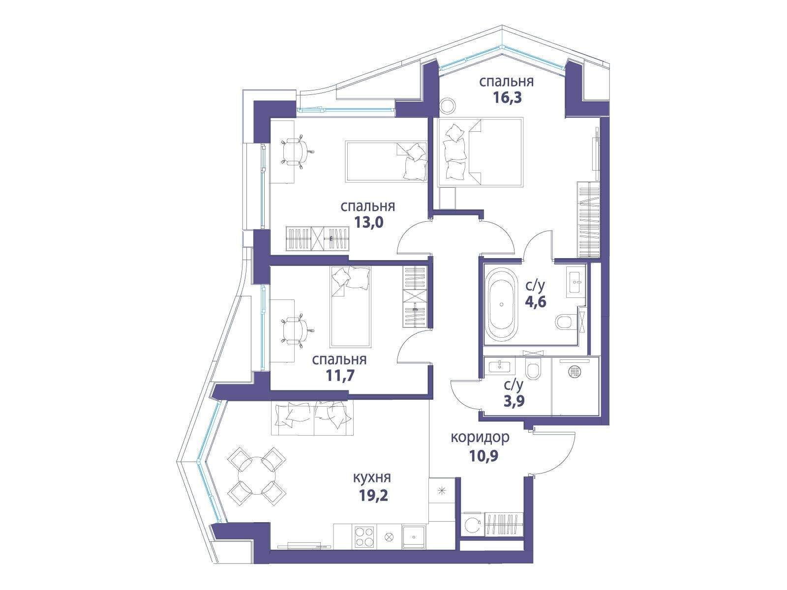 Продается 3-комнатная квартира от застройщика: общая площадь 79.60 м, жилая 41.00 м, кухня 19.20 м, 19-й этаж, жилой квартал «Вдохновение», корпус 33 (секция 3) . Срок сдачи: 4 квартал 2027 года.