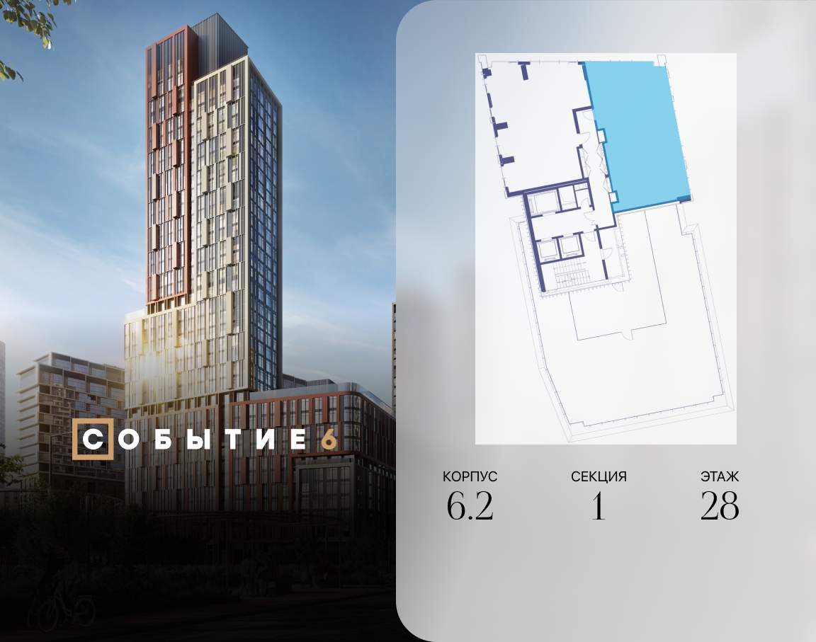 Продаётся 3-комнатная квартира от застройщика: общая площадь 97.50 м, жилая 46.50 м, кухня 27.50 м, 28-й этаж, жилой квартал «Событие-6», корпус 2 (секция 1) Срок сдачи: 1 квартал 2029 года.