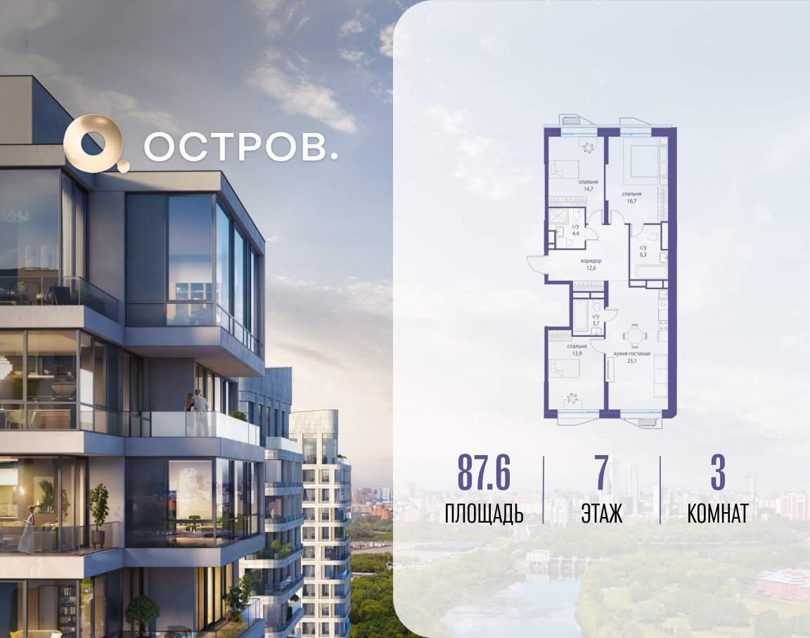 Продается 3-комнатная квартира от застройщика: общая площадь 75.80 м, жилая 41.00 м, кухня 15.40 м, 16-й этаж, жилой квартал «Вдохновение», корпус 33 (секция 3) . Срок сдачи: 4 квартал 2027 года.
