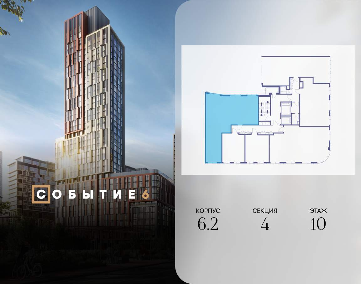 Продаётся 3-комнатная квартира от застройщика: общая площадь 108.90 м, жилая 42.40 м, кухня 23.30 м, 10-й этаж, жилой квартал «Событие-6», корпус 2 (секция 4) Срок сдачи: 1 квартал 2029 года.