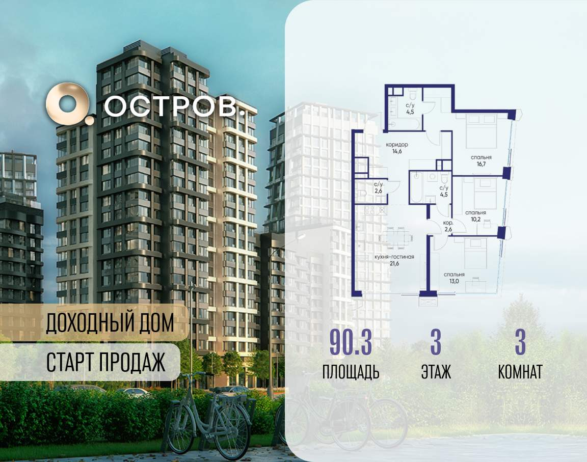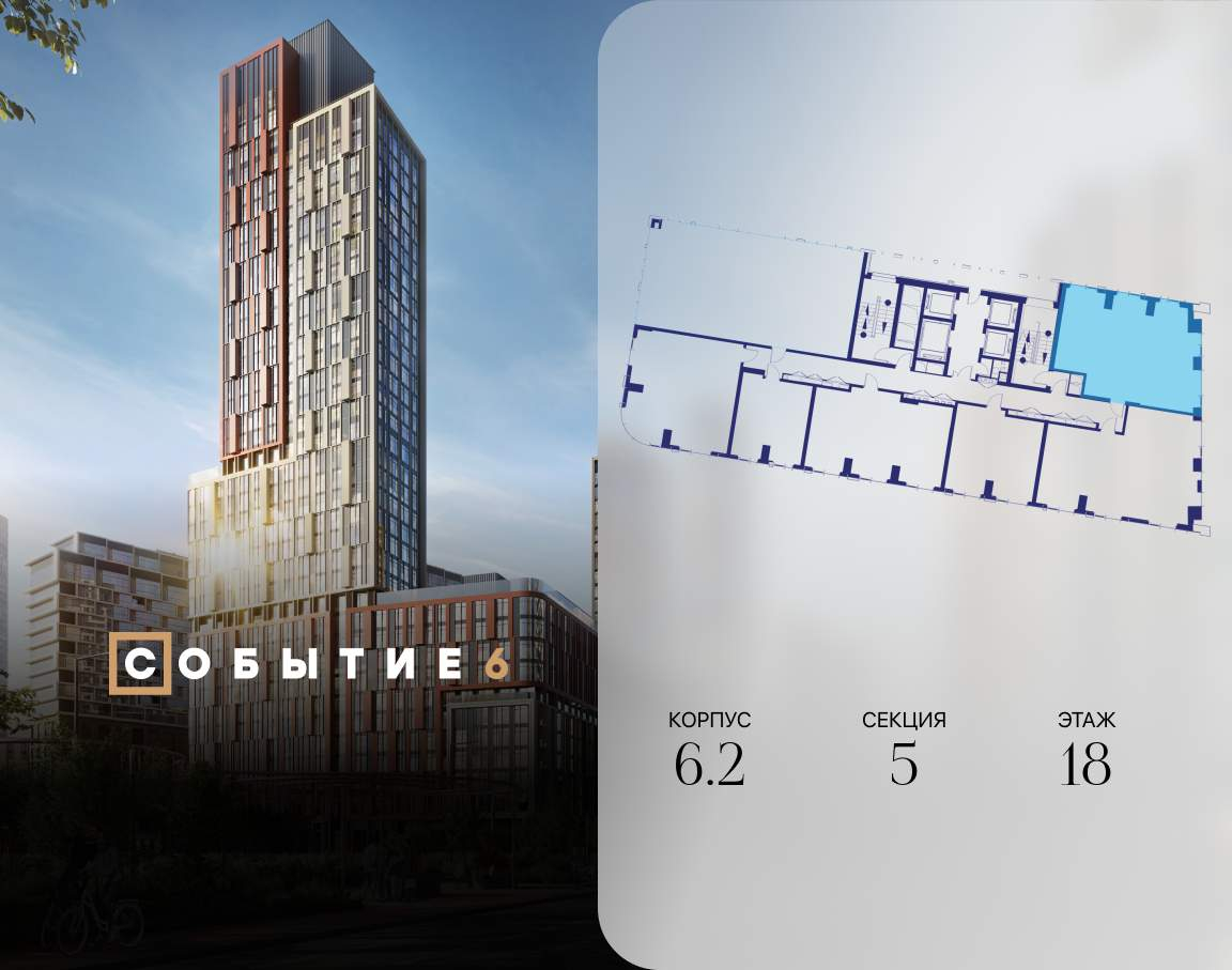 Продаётся 3-комнатная квартира от застройщика: общая площадь 77.20 м, жилая 41.70 м, кухня 18.10 м, 18-й этаж, жилой квартал «Событие-6», корпус 2 (секция 5) Срок сдачи: 1 квартал 2029 года.