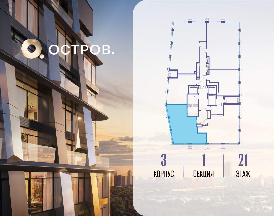 ОСТРОВ от Донстрой - жилой комплекс на западе Москвы, в Мневниковской пойме. Уникальное преимущество комплекса - в том, что он обособлен от города рекой и природным парком (650 га) . Благодаря природному окружению эта территория имеет лучший экологический рейтинг в столице. Кварталы ОСТРОВА объединены ландшафтным дизайном в единое пространство - с набережными и Центральным бульваром. На ОСТРОВЕ любые объекты, необходимые для полноценной жизни и отдыха, находятся на расстоянии 15-минутной прогулки. Торговый центр и супермаркеты, кафе и рестораны, фитнес, салоны красоты, школы и детские сады. А также крупнейший в Москве спортивный кластер.