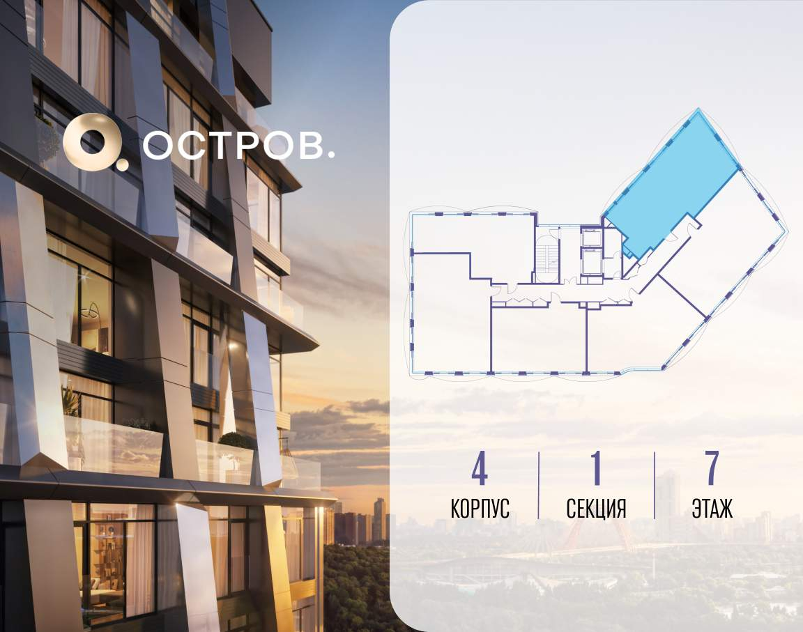 ОСТРОВ от Донстрой - жилой комплекс на западе Москвы, в Мневниковской пойме. Уникальное преимущество комплекса - в том, что он обособлен от города рекой и природным парком (650 га) . Благодаря природному окружению эта территория имеет лучший экологический рейтинг в столице. Кварталы ОСТРОВА объединены ландшафтным дизайном в единое пространство - с набережными и Центральным бульваром. На ОСТРОВЕ любые объекты, необходимые для полноценной жизни и отдыха, находятся на расстоянии 15-минутной прогулки. Торговый центр и супермаркеты, кафе и рестораны, фитнес, салоны красоты, школы и детские сады. А также крупнейший в Москве спортивный кластер.