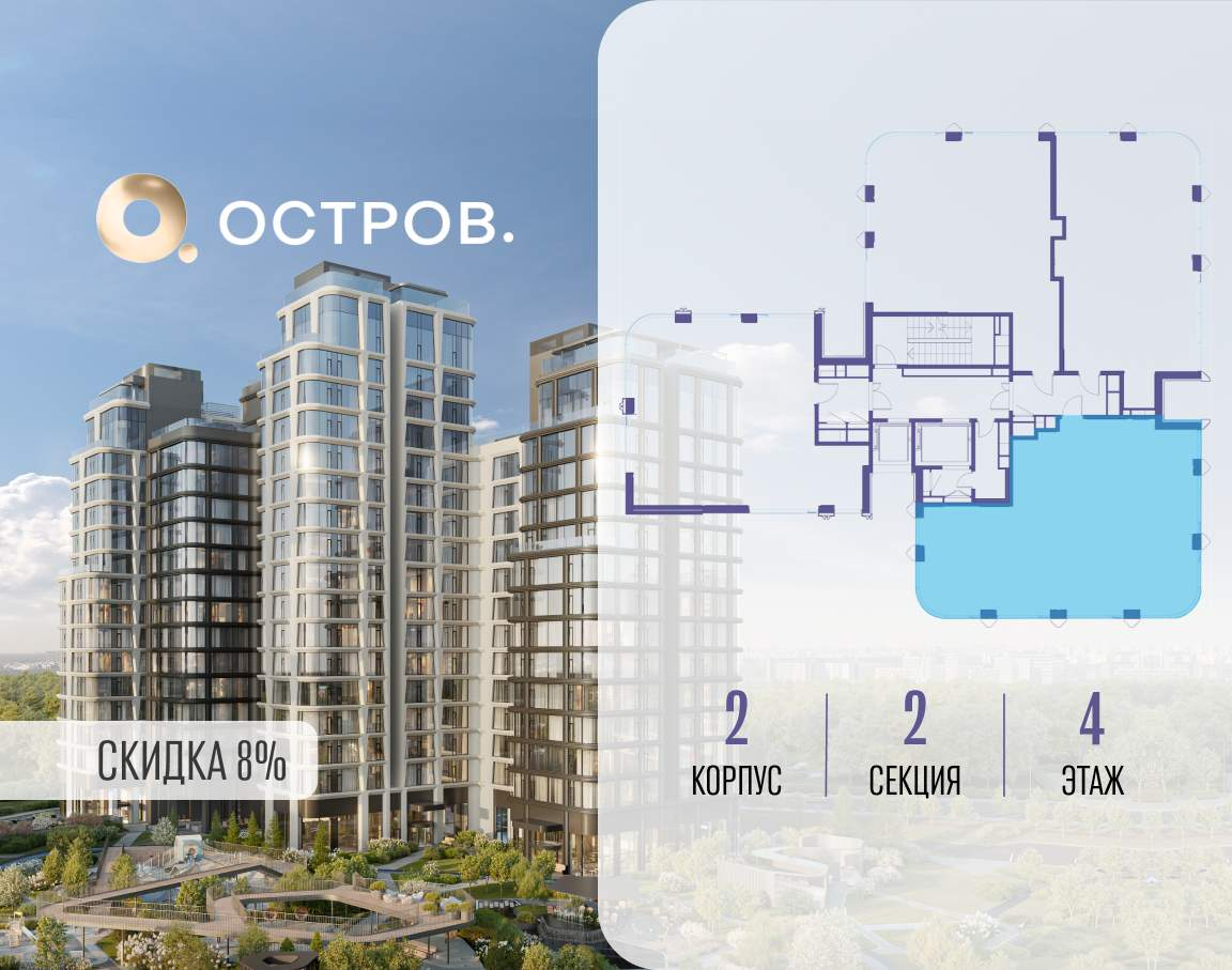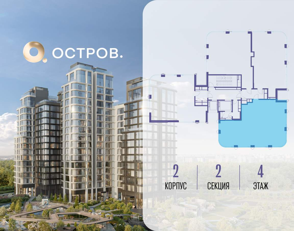 ОСТРОВ от Донстрой - жилой комплекс на западе Москвы, в Мневниковской пойме. Уникальное преимущество комплекса - в том, что он обособлен от города рекой и природным парком (650 га) . Благодаря природному окружению эта территория имеет лучший экологический рейтинг в столице. Кварталы ОСТРОВА объединены ландшафтным дизайном в единое пространство - с набережными и Центральным бульваром. На ОСТРОВЕ любые объекты, необходимые для полноценной жизни и отдыха, находятся на расстоянии 15-минутной прогулки. Торговый центр и супермаркеты, кафе и рестораны, фитнес, салоны красоты, школы и детские сады. А также крупнейший в Москве спортивный кластер.