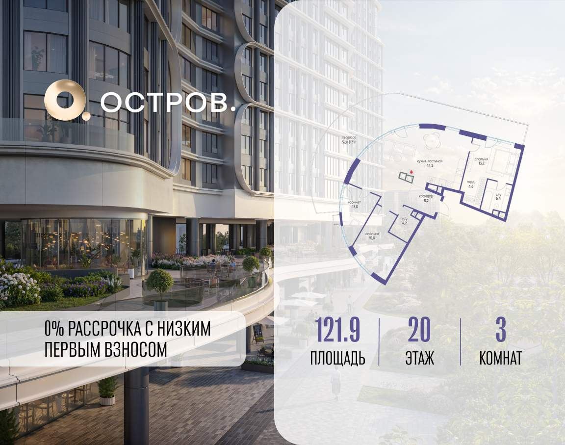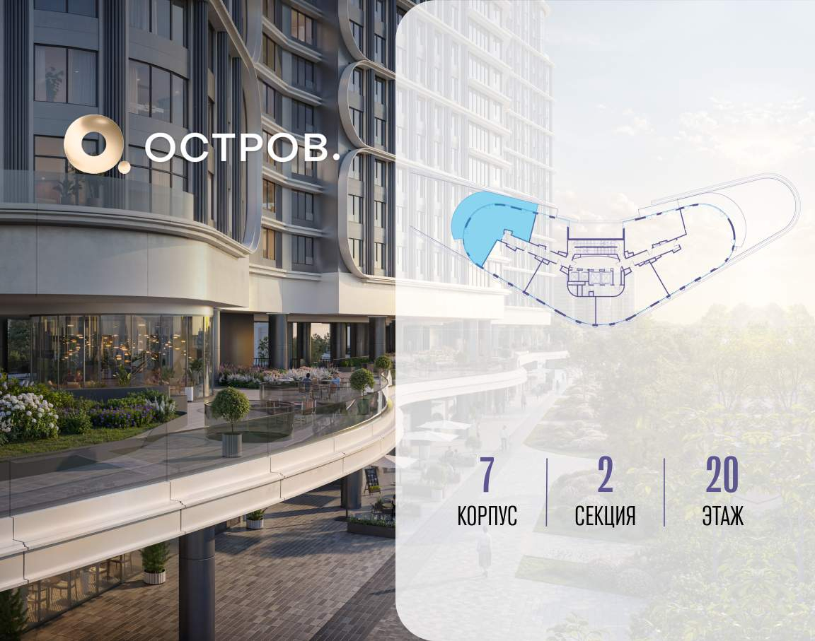 ОСТРОВ от Донстрой - жилой комплекс на западе Москвы, в Мневниковской пойме. Уникальное преимущество комплекса - в том, что он обособлен от города рекой и природным парком (650 га) . Благодаря природному окружению эта территория имеет лучший экологический рейтинг в столице. Кварталы ОСТРОВА объединены ландшафтным дизайном в единое пространство - с набережными и Центральным бульваром. На ОСТРОВЕ любые объекты, необходимые для полноценной жизни и отдыха, находятся на расстоянии 15-минутной прогулки. Торговый центр и супермаркеты, кафе и рестораны, фитнес, салоны красоты, школы и детские сады. А также крупнейший в Москве спортивный кластер.