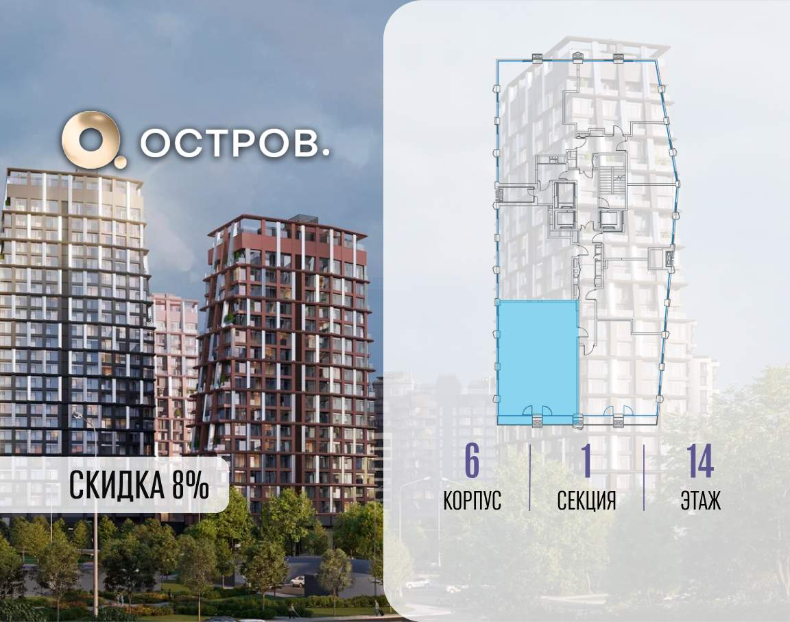 Остров. 14 ДОХОДНЫЙ ДОМ - ЧАСТЬ ПРОЕКТА «ОСТРОВ», В 10 МИНУТАХ ОТ МОСКВА-СИТИ, В 15 МИНУТАХ