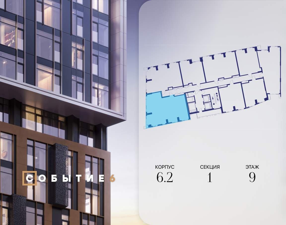 Продаётся 3-комнатная квартира от застройщика: общая площадь 99.10 м, жилая 41.80 м, кухня 23.20 м, 9-й этаж, жилой квартал «Событие-6», корпус 2 (секция 1) Срок сдачи: 4 квартал 2029 года.