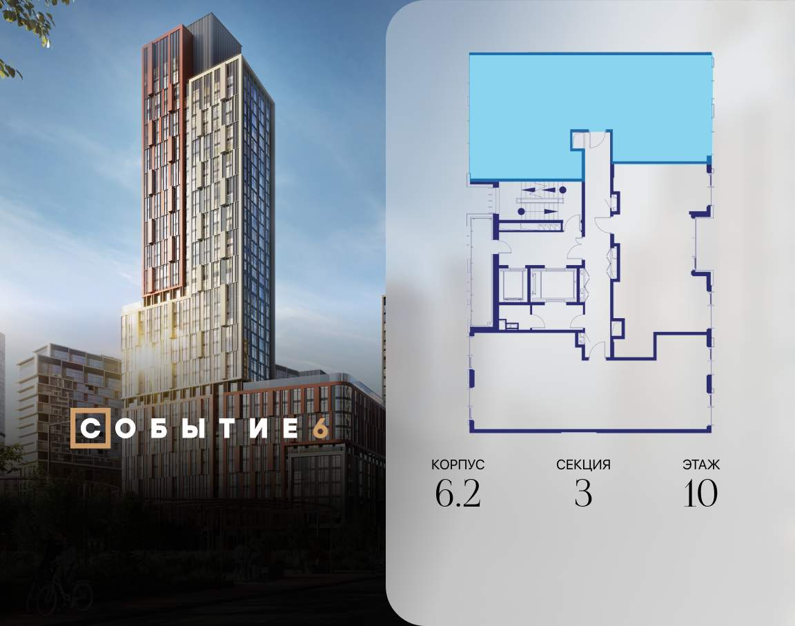 Продаётся 3-комнатная квартира от застройщика: общая площадь 102.80 м, жилая 42.60 м, кухня 28.40 м, 10-й этаж, жилой квартал «Событие-6», корпус 2 (секция 3) Срок сдачи: 1 квартал 2029 года.